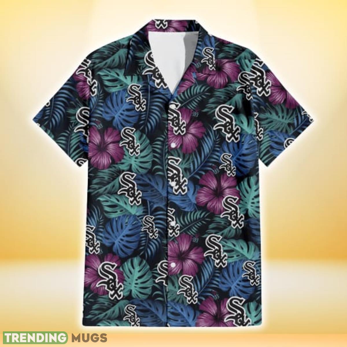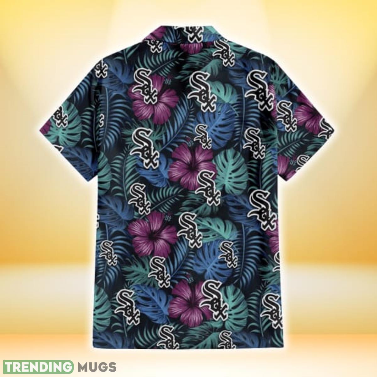Some of the Chicago White Sox Dark Magenta Green Leaf Black Background 3D Hawaiian Shirt Gift For Fans photos