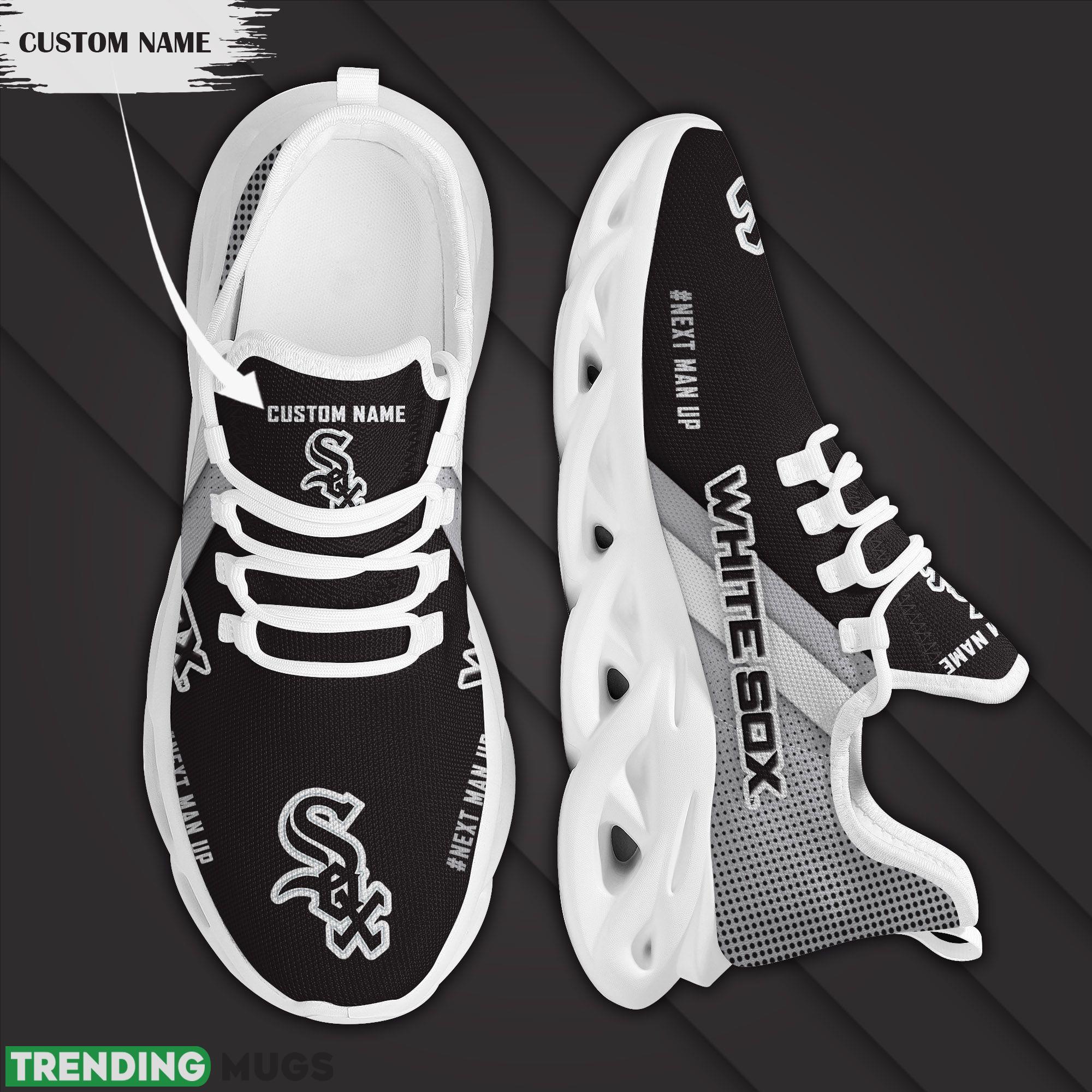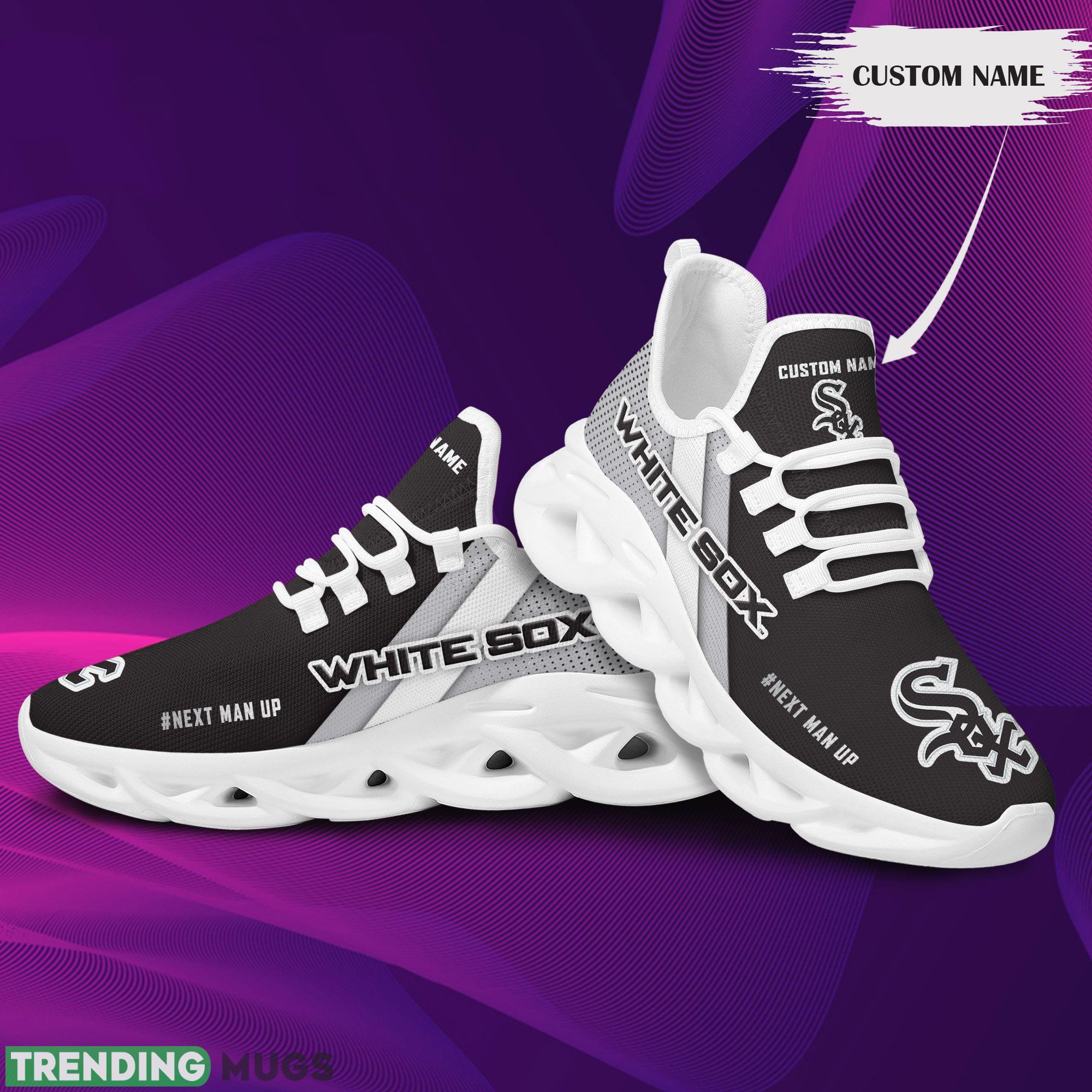 Featuring the iconic Chicago White Sox logo prominently displayed on the side, these shoes are a must-have for any die-hard fan. The custom name option allows you to personalize your kicks, making them truly one-of-a-kind.