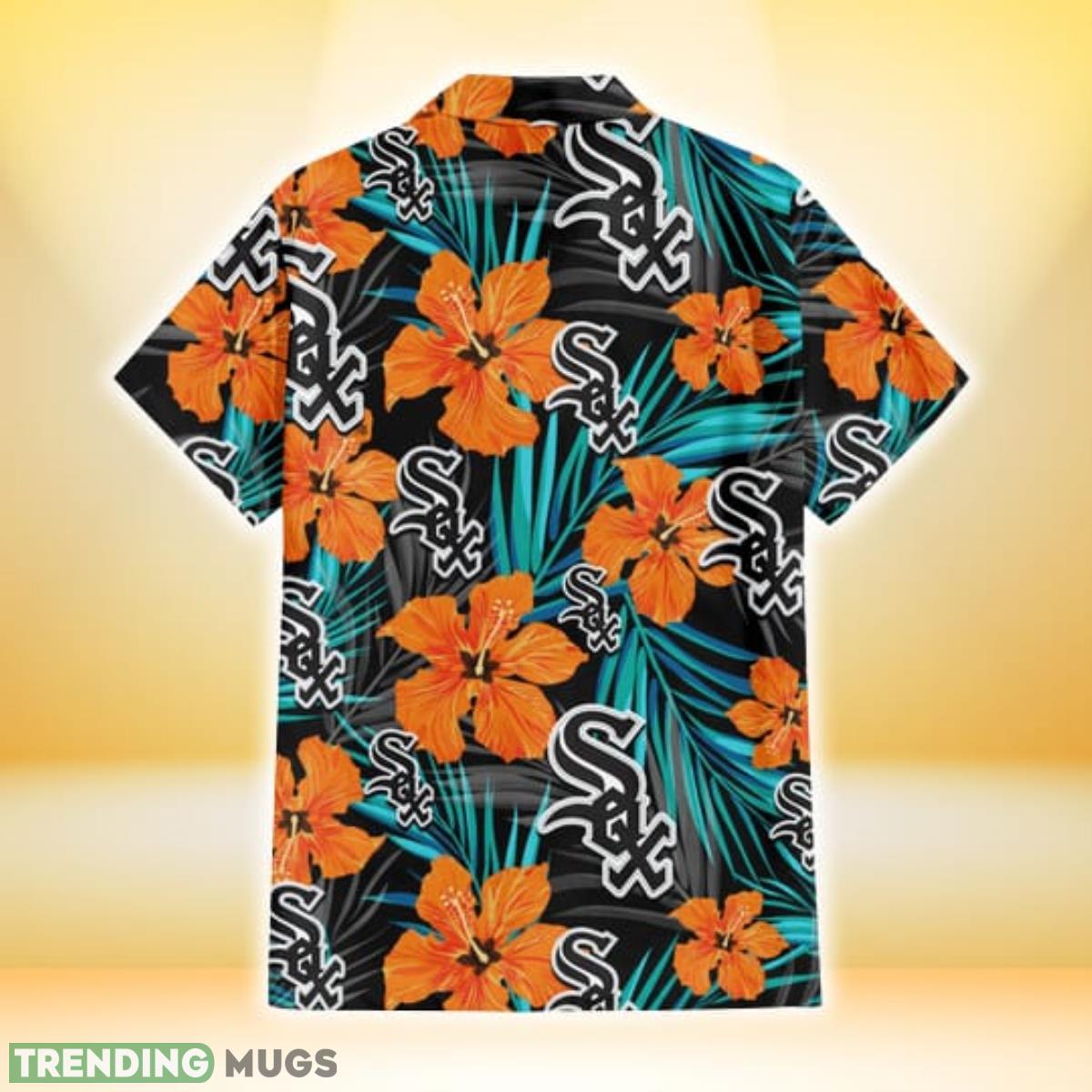 Some of the Chicago White Sox Orange Hibiscus Blue Gray Leaf Black Background 3D Hawaiian Shirt Gift For Fans photos