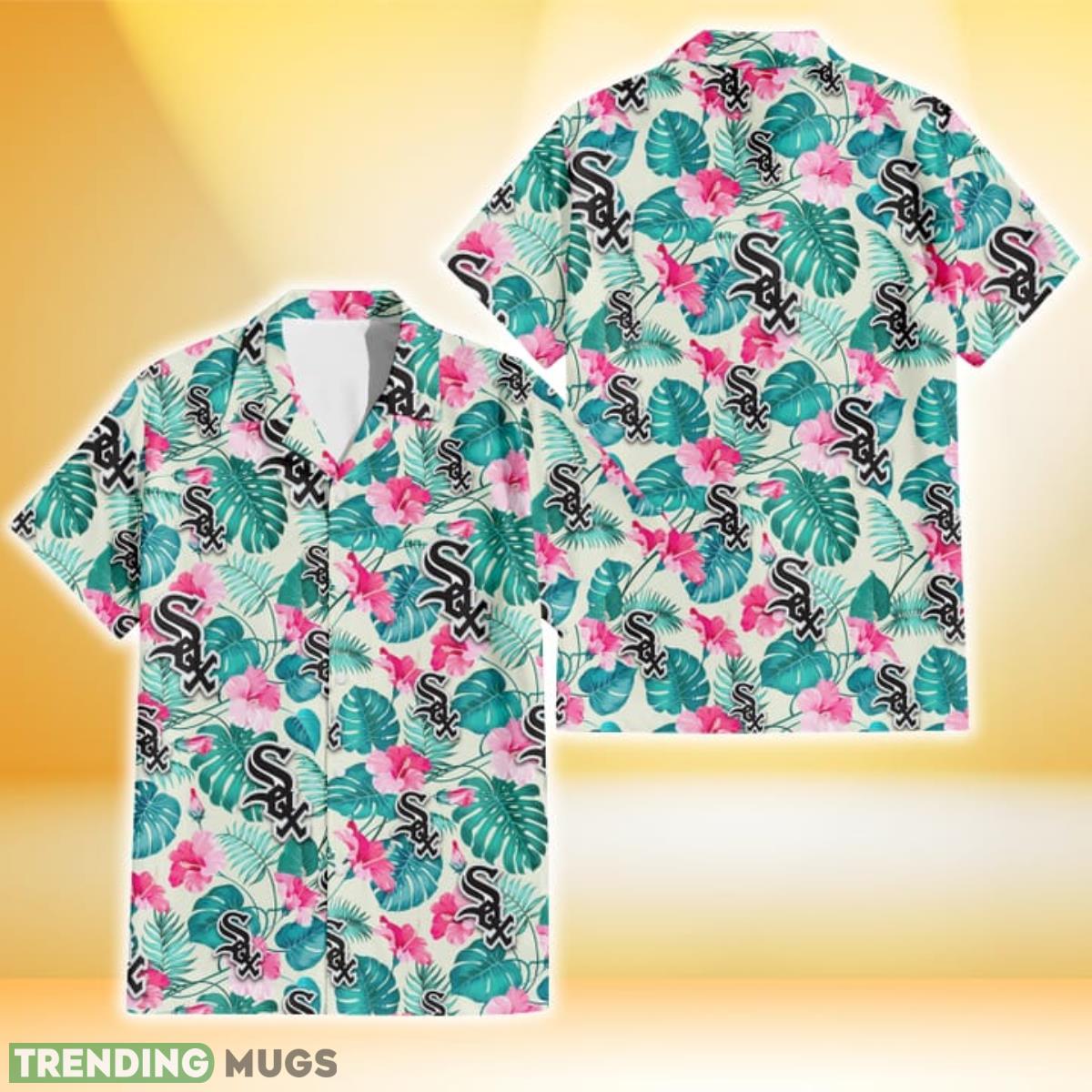 Some of the Chicago White Sox Pink Hibiscus Green Leaf Beige Background 3D Hawaiian Shirt Gift For Fans photos