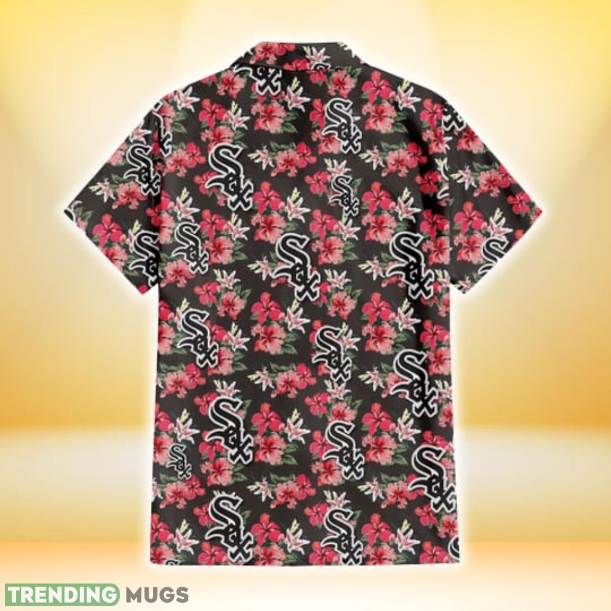 Chicago White Sox Pink Hibiscus Orchid Brown Background 3D Hawaiian Shirt Gift For Fans Product Photo 2