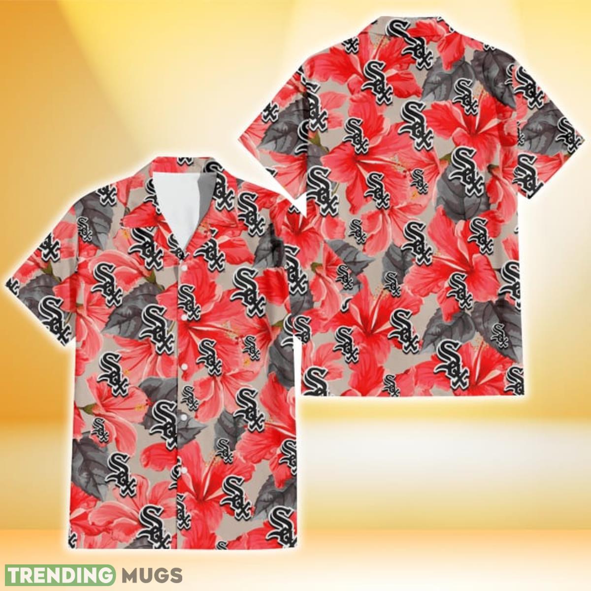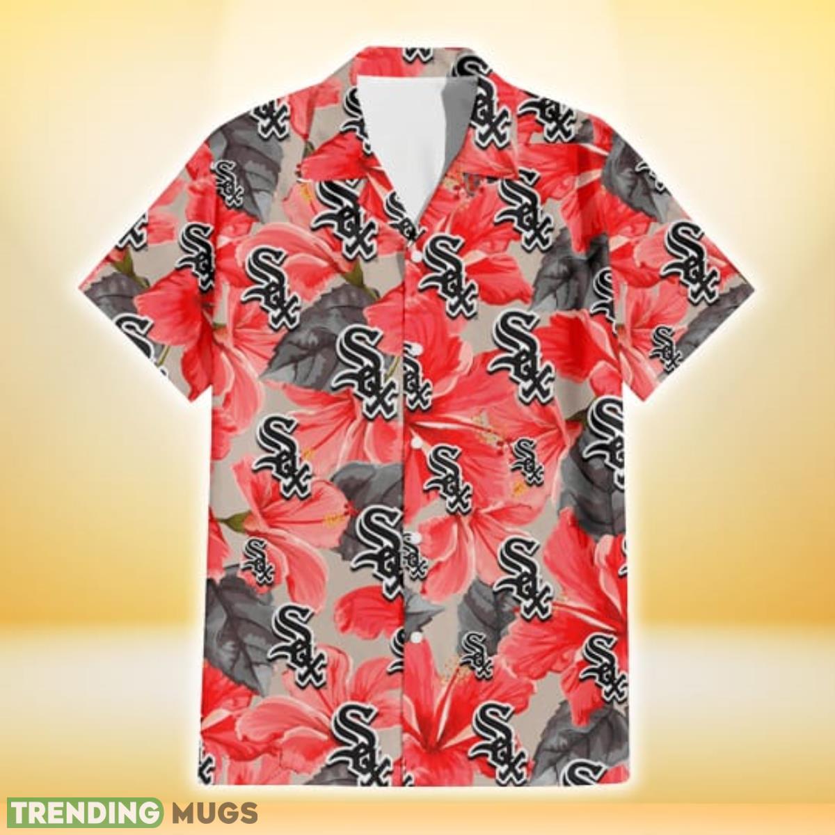 Some of the Chicago White Sox Red Hibiscus Gray Leaf Gainsboro Background 3D Hawaiian Shirt Gift For Fans photos