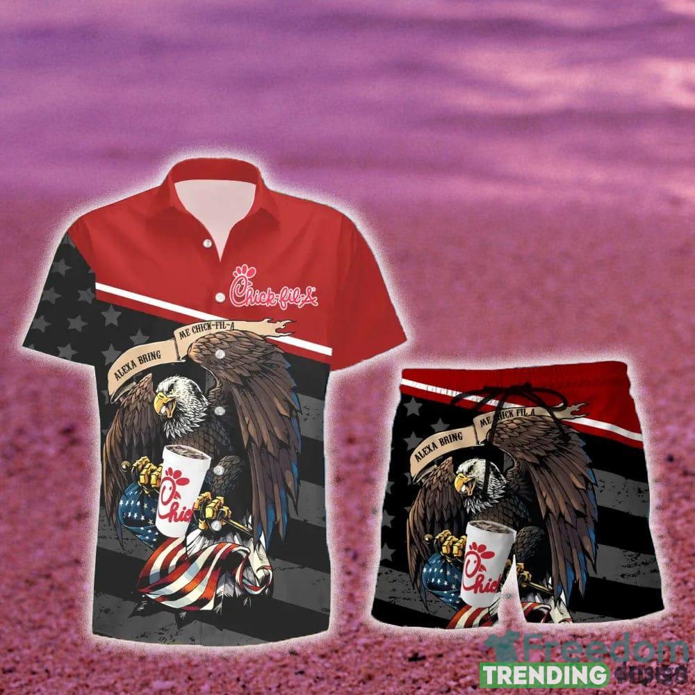So why wait? Stand out from the crowd and celebrate the spirit of America with our Chick-fil-A Eagle American Flag Gift Hawaiian Set Shirt and Short Summer Beach. Order yours today and get ready to make a patriotic statement wherever you go!