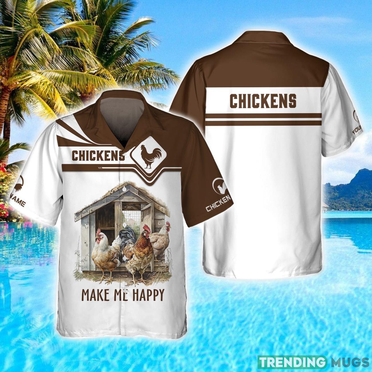 Make a bold and personalized fashion statement with our Chicken Make Me Happy Personalized Name 3D Printed Hawaiian Shirt! Designed to bring joy and smiles wherever you go, this eye-catching shirt is a must-have for all chicken enthusiasts out there.