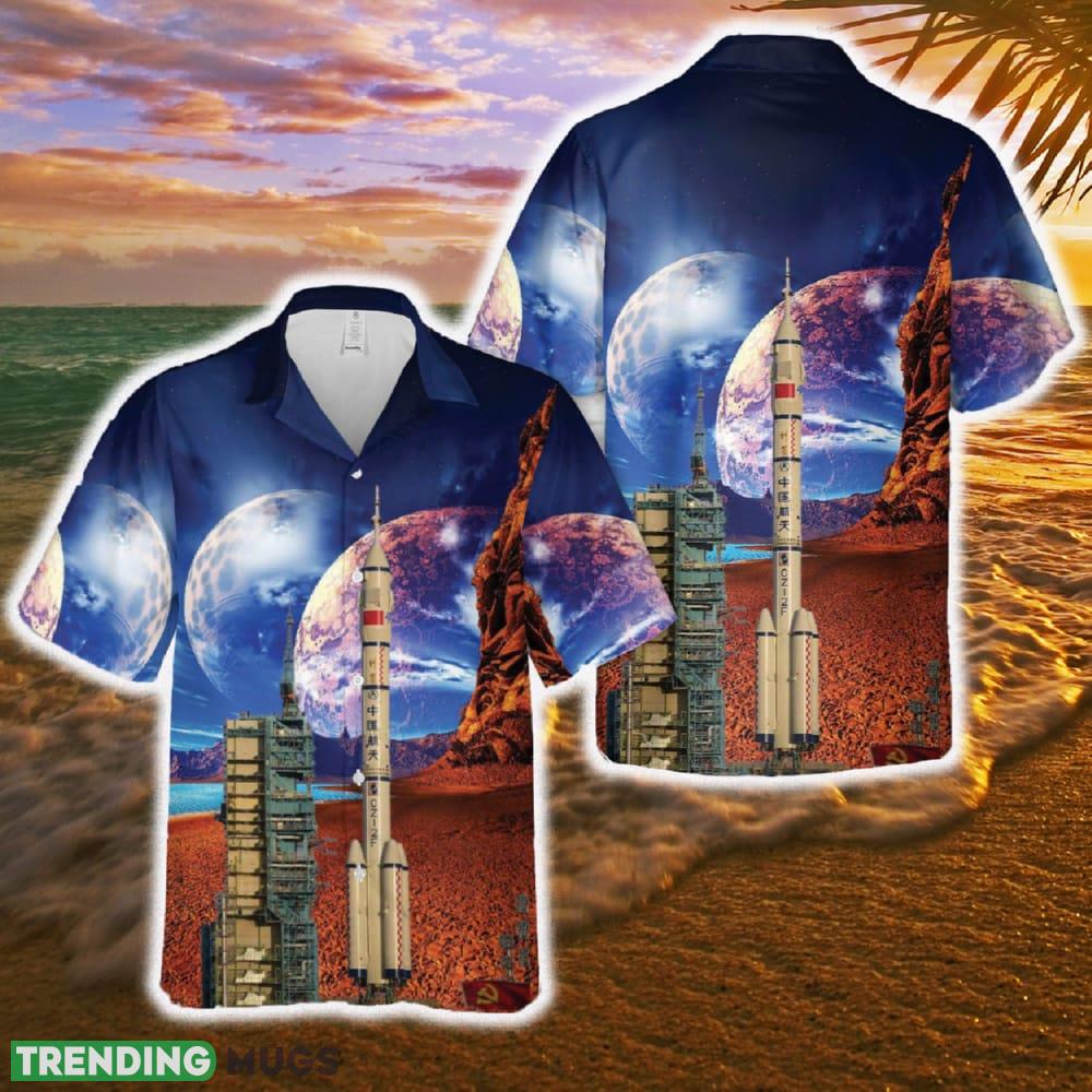 Crafted with meticulous attention to detail, this shirt features a stunning design inspired by the iconic Chinese Long March 2F Kit Rocket. Its bold colors and intricate patterns effortlessly capture the essence of both Chinese and Hawaiian aesthetics, creating a unique fusion that is sure to turn heads wherever you go.