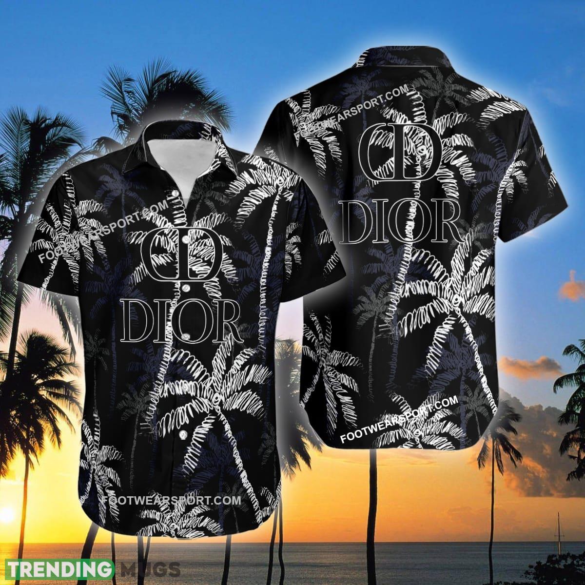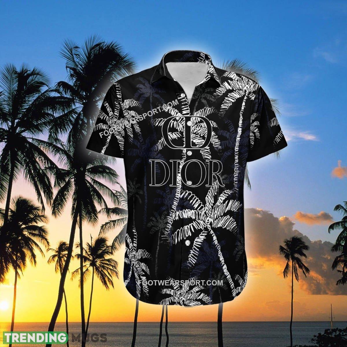 Christian Dior Brand Coconut Tree Pattern Black Hawaiian Shirt For Men And Women Details: