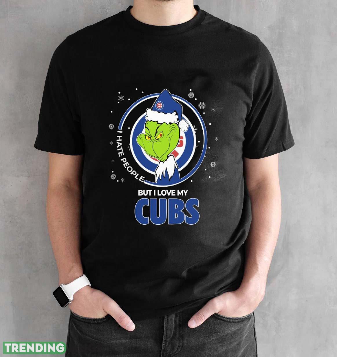 Christmas Grinch Santa I Hate People But I Love My Chicago Cubs Funny T Shirt Sweatshirt For Fans Dark Shirt