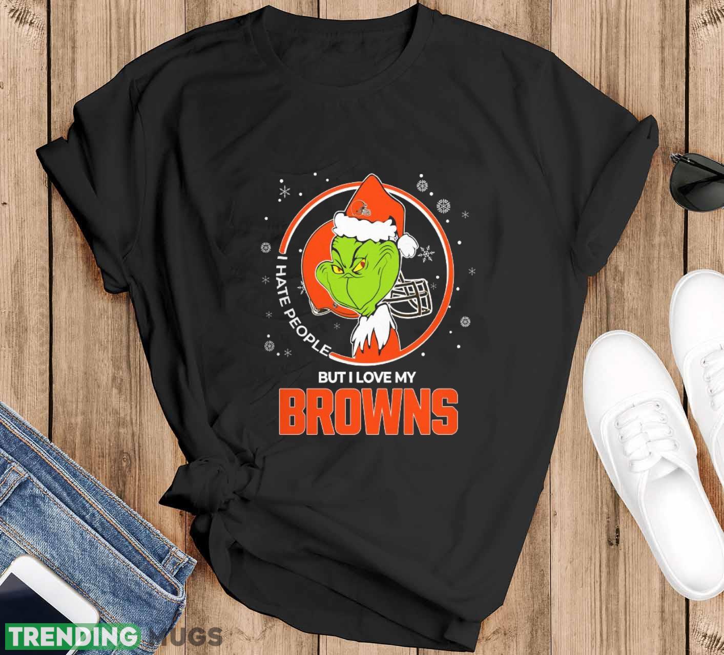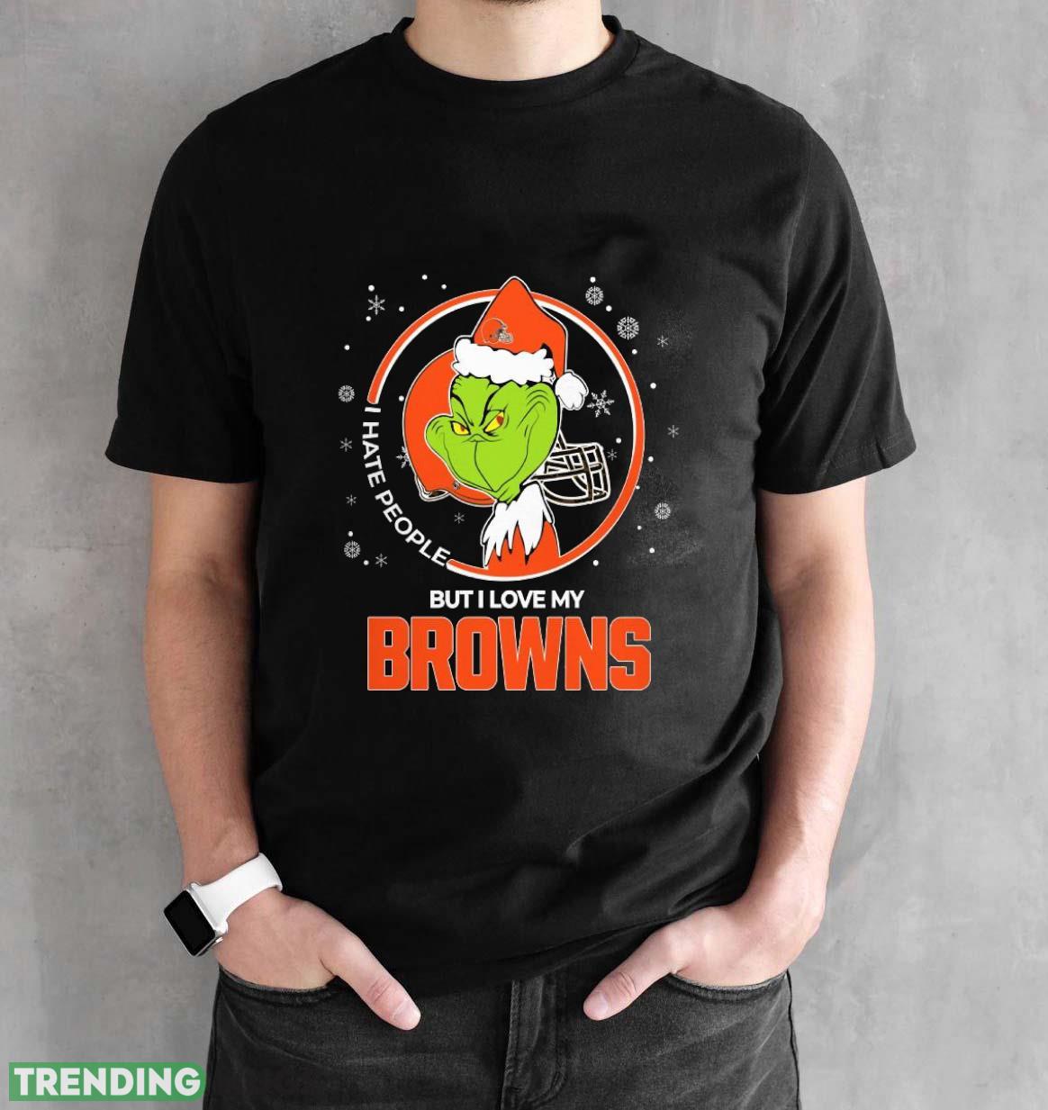 Christmas Grinch Santa I Hate People But I Love My Cleveland Browns Funny T Shirt Sweatshirt For Fans – Black T-Shirt