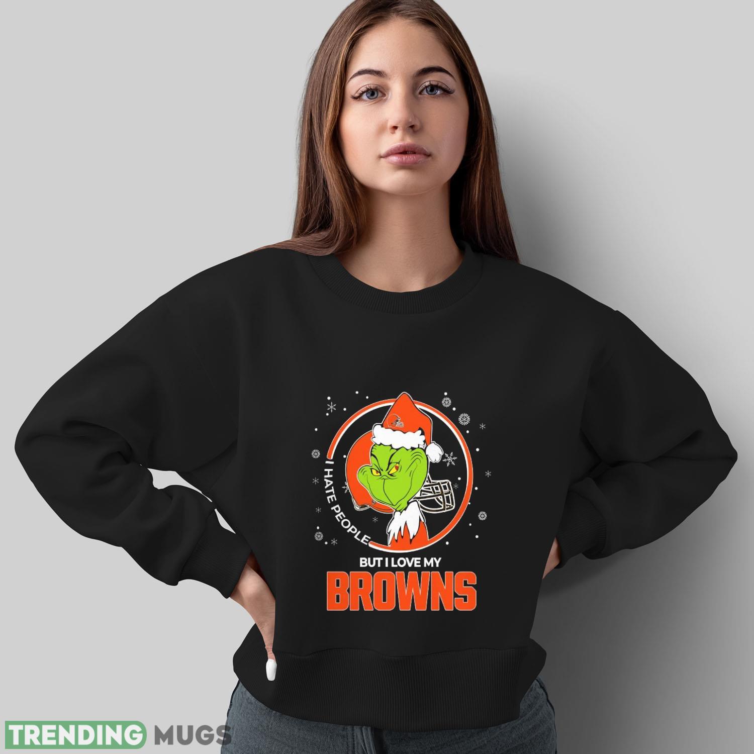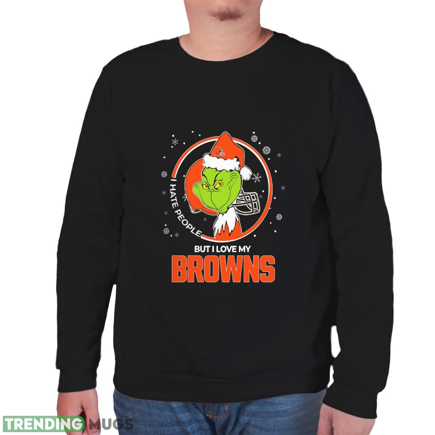 Christmas Grinch Santa I Hate People But I Love My Cleveland Browns Funny T Shirt Sweatshirt For Fans Details
