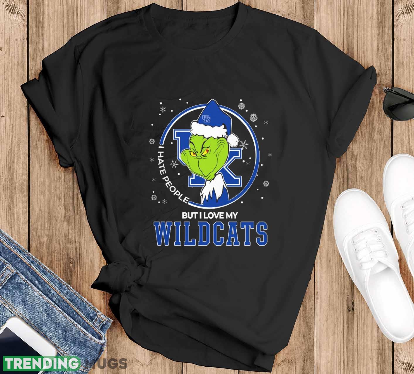 Christmas Grinch Santa I Hate People But I Love My Kentucky Wildcats Funny T Shirt Sweatshirt For Fans – Black T-Shirt