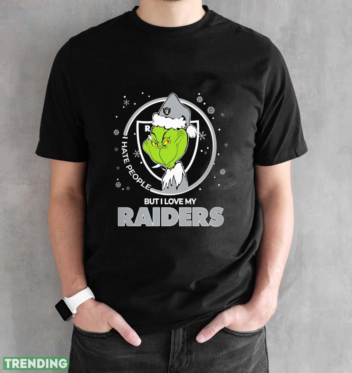 Christmas Grinch Santa I Hate People But I Love My Las Vegas Raiders Funny T Shirt Sweatshirt For Fans Details