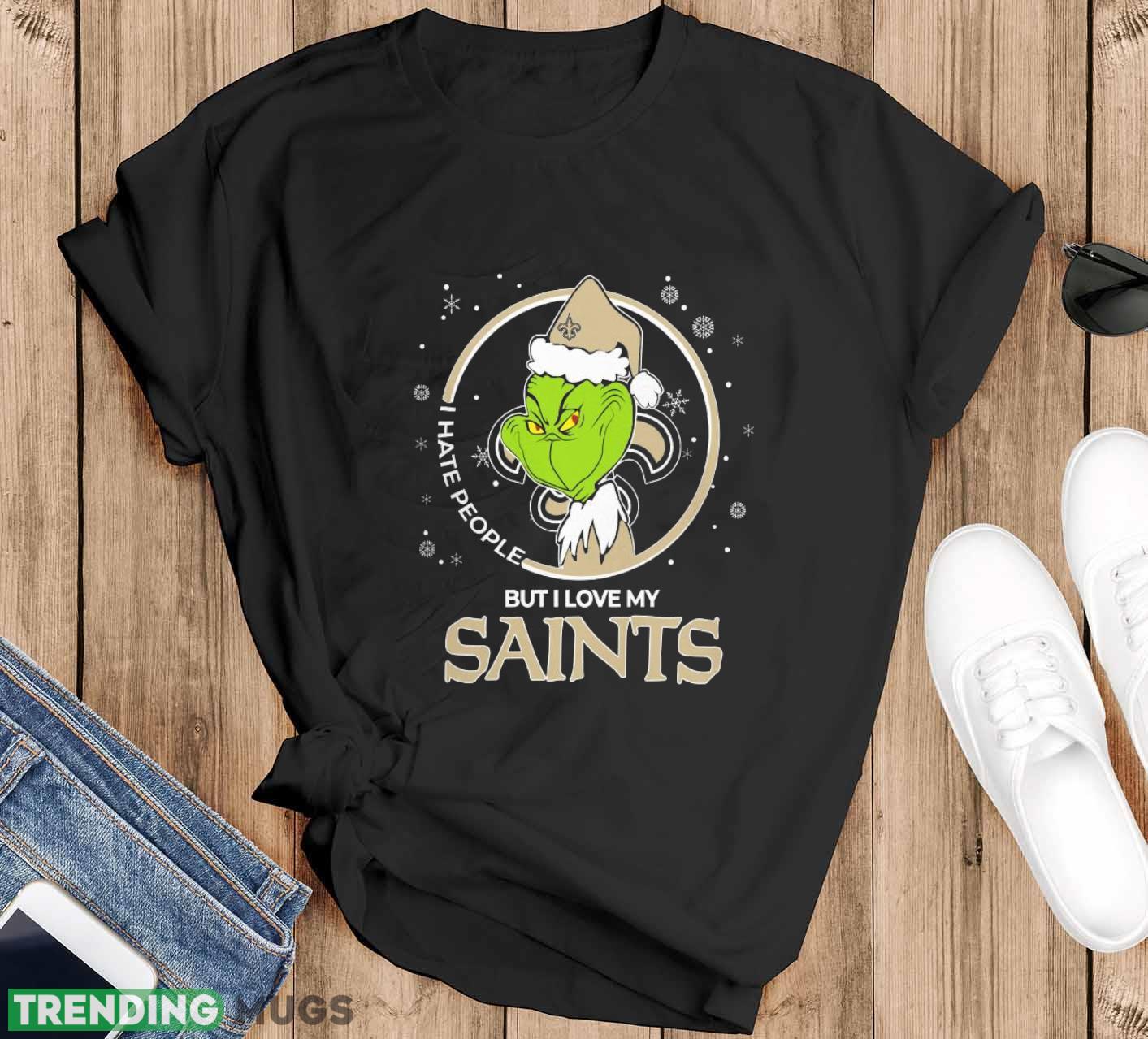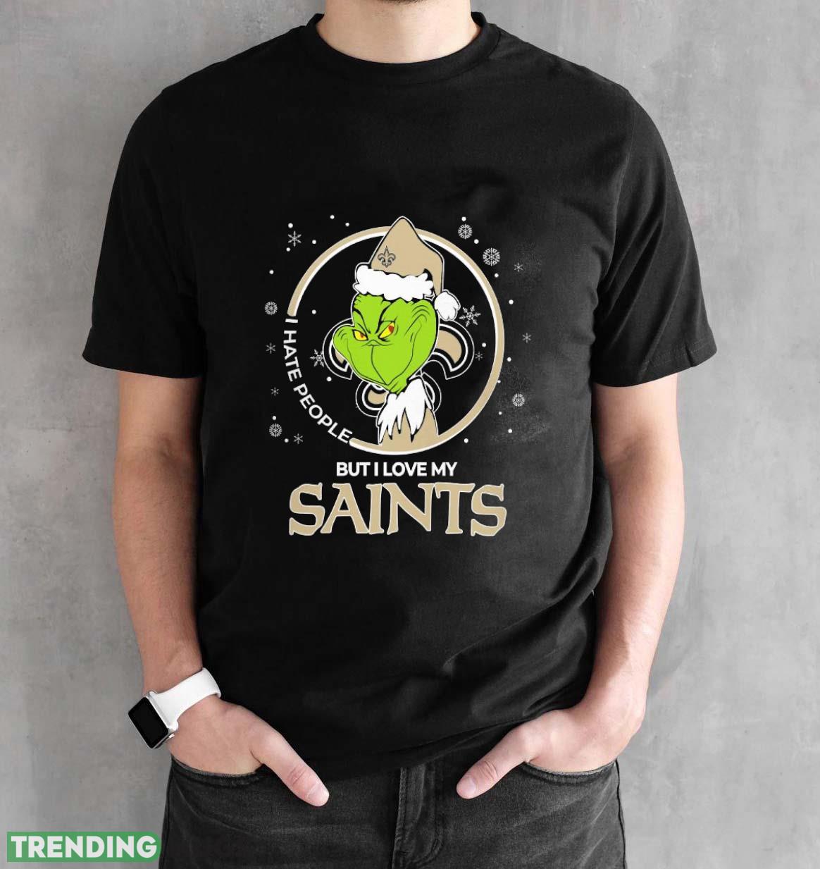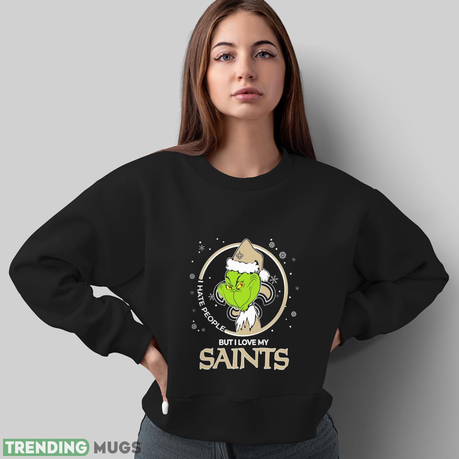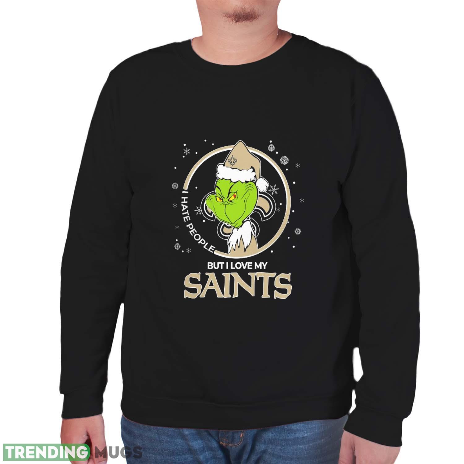 Christmas Grinch Santa I Hate People But I Love My New Orleans Saints Funny T Shirt Sweatshirt For Fans Details