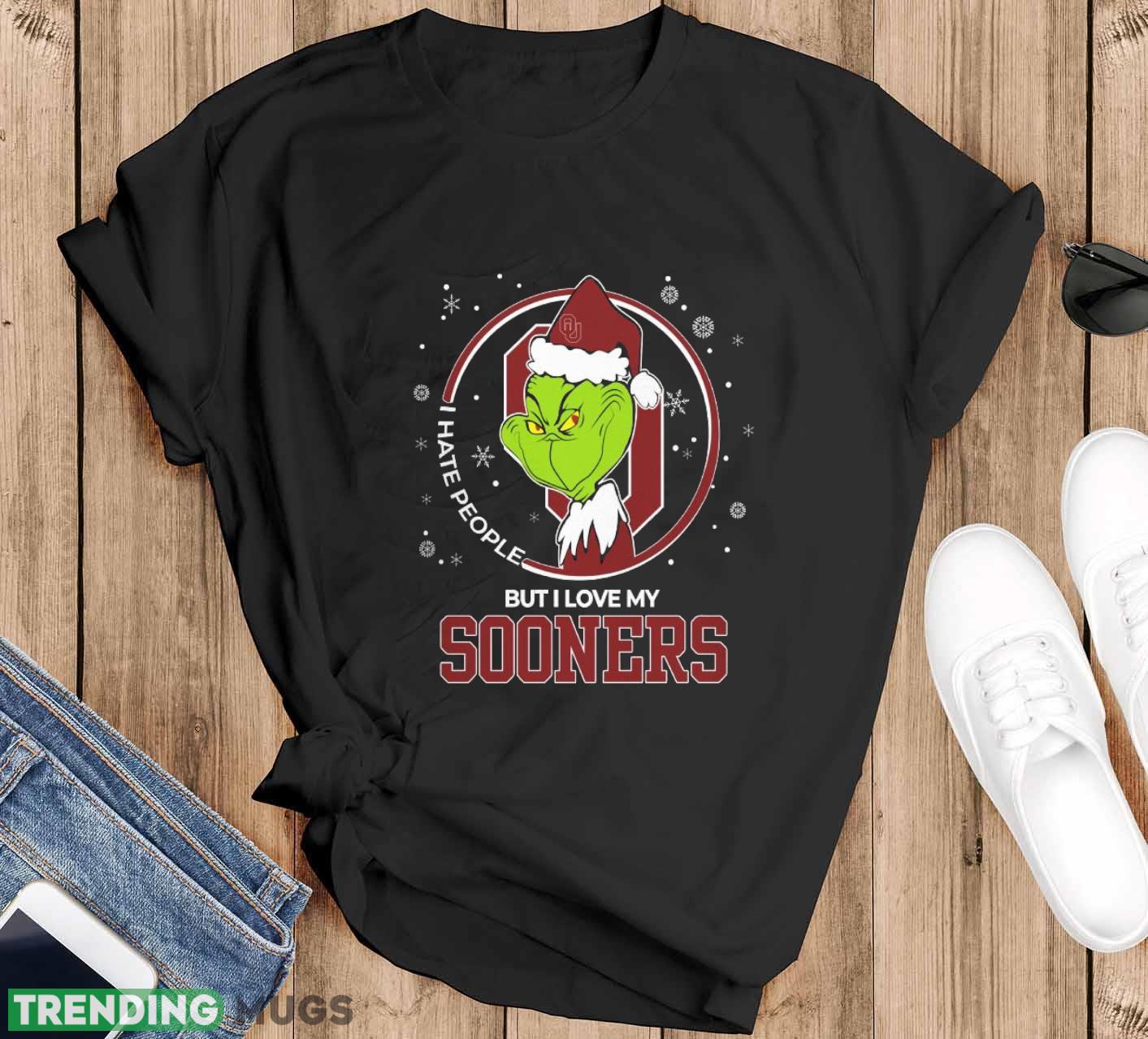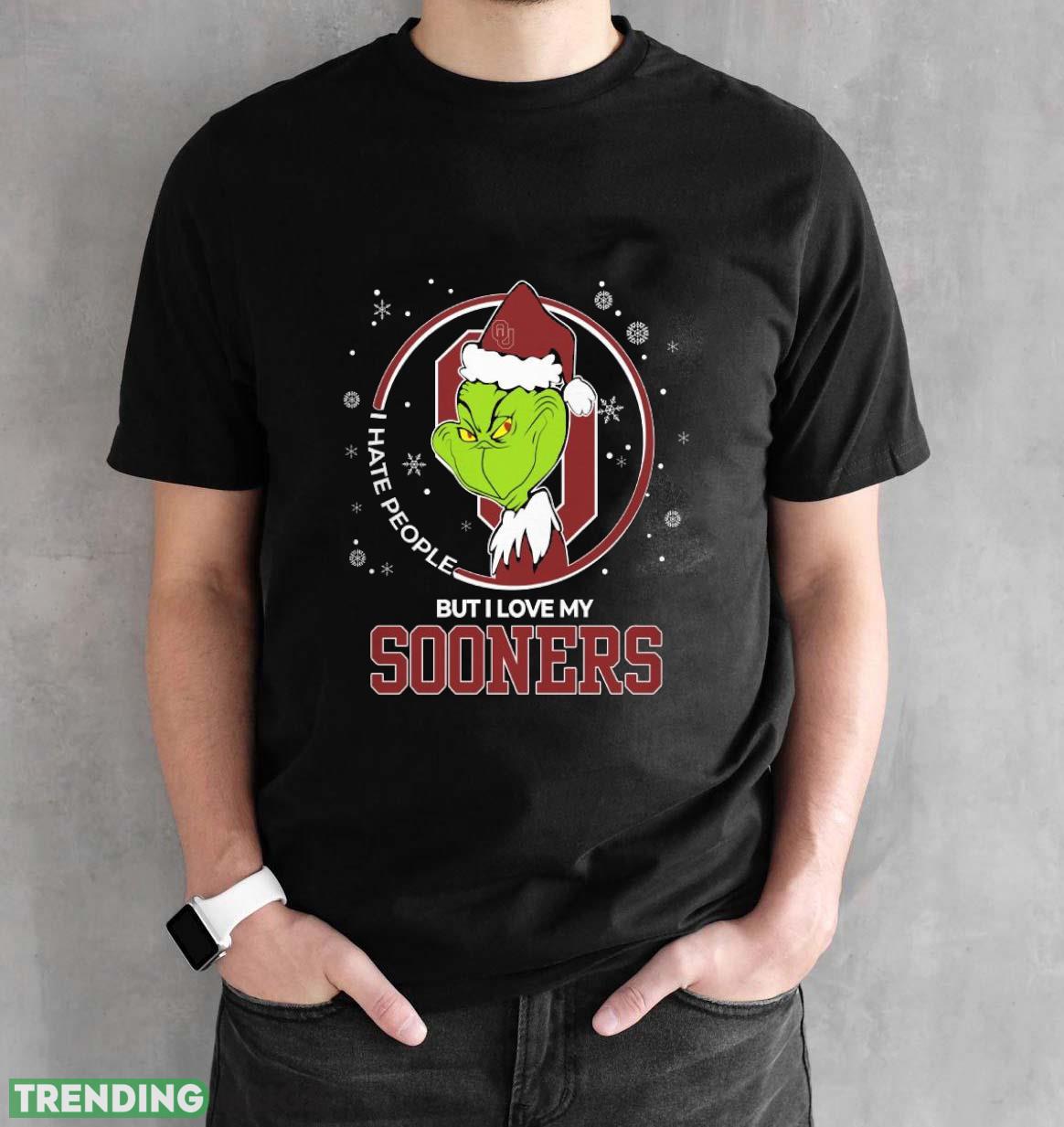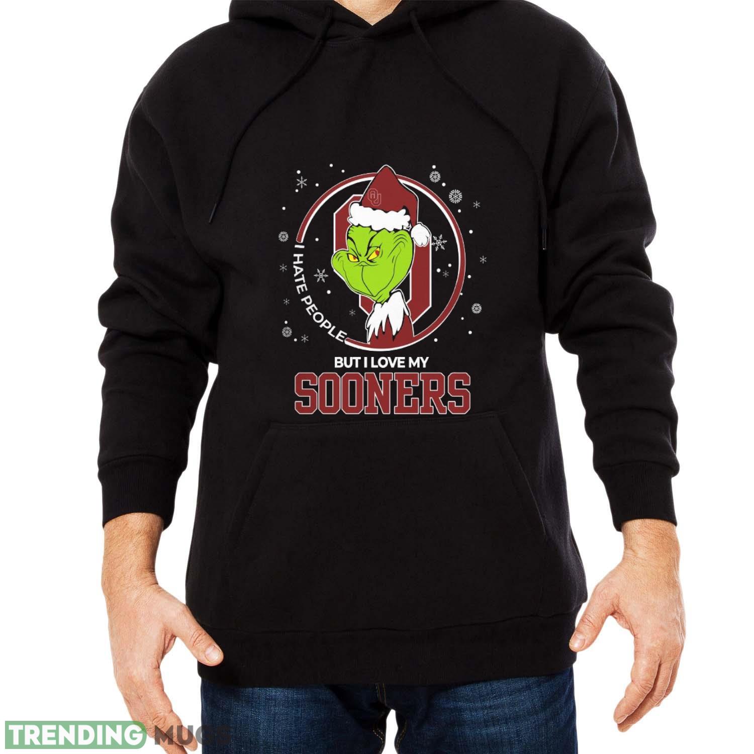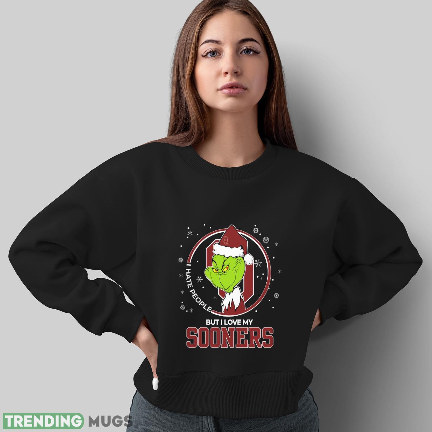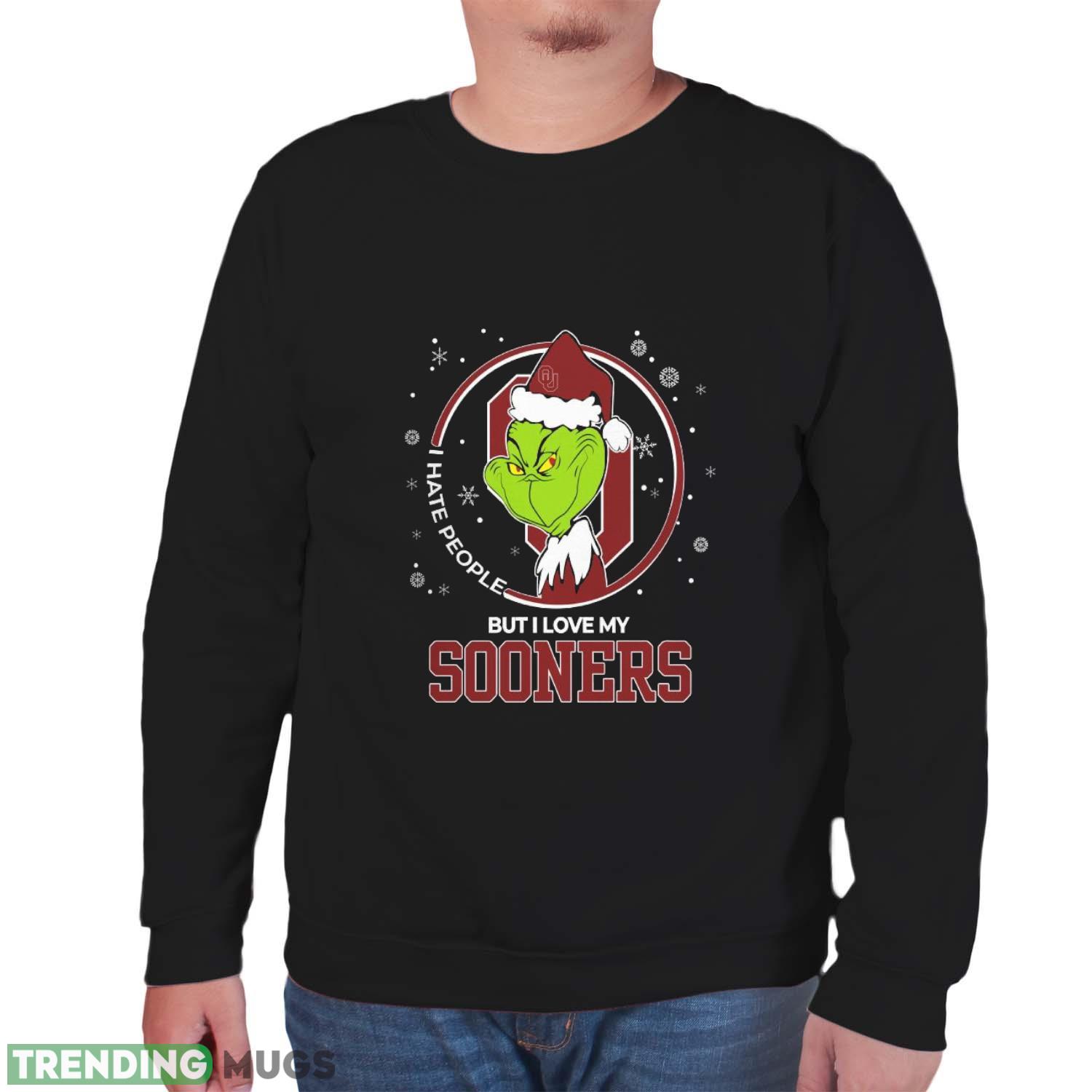 Christmas Grinch Santa I Hate People But I Love My Oklahoma Sooners Funny T Shirt Sweatshirt For Fans Details