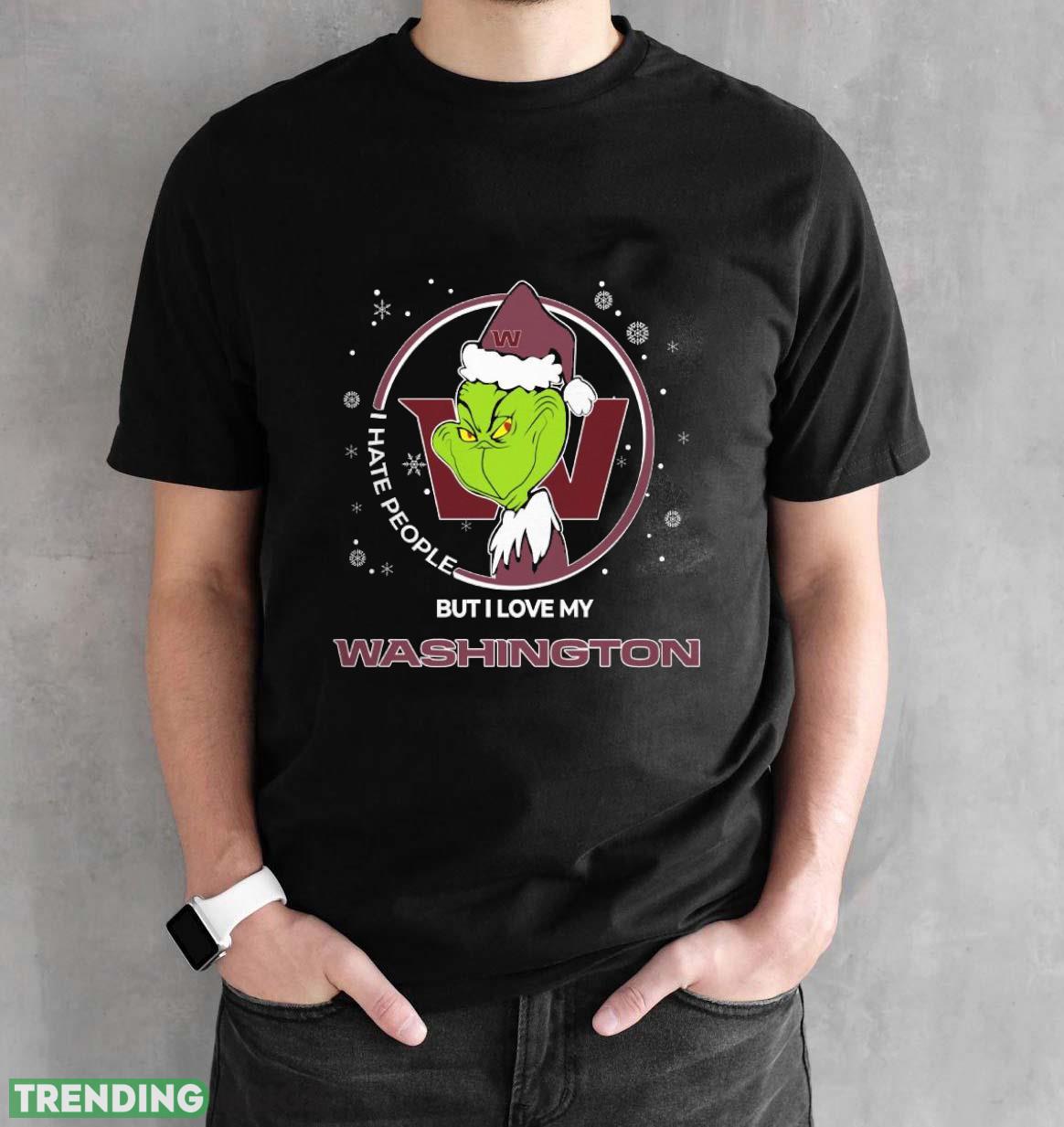 Christmas Grinch Santa I Hate People But I Love My Washington Football Team Funny T Shirt Sweatshirt For Fans Details