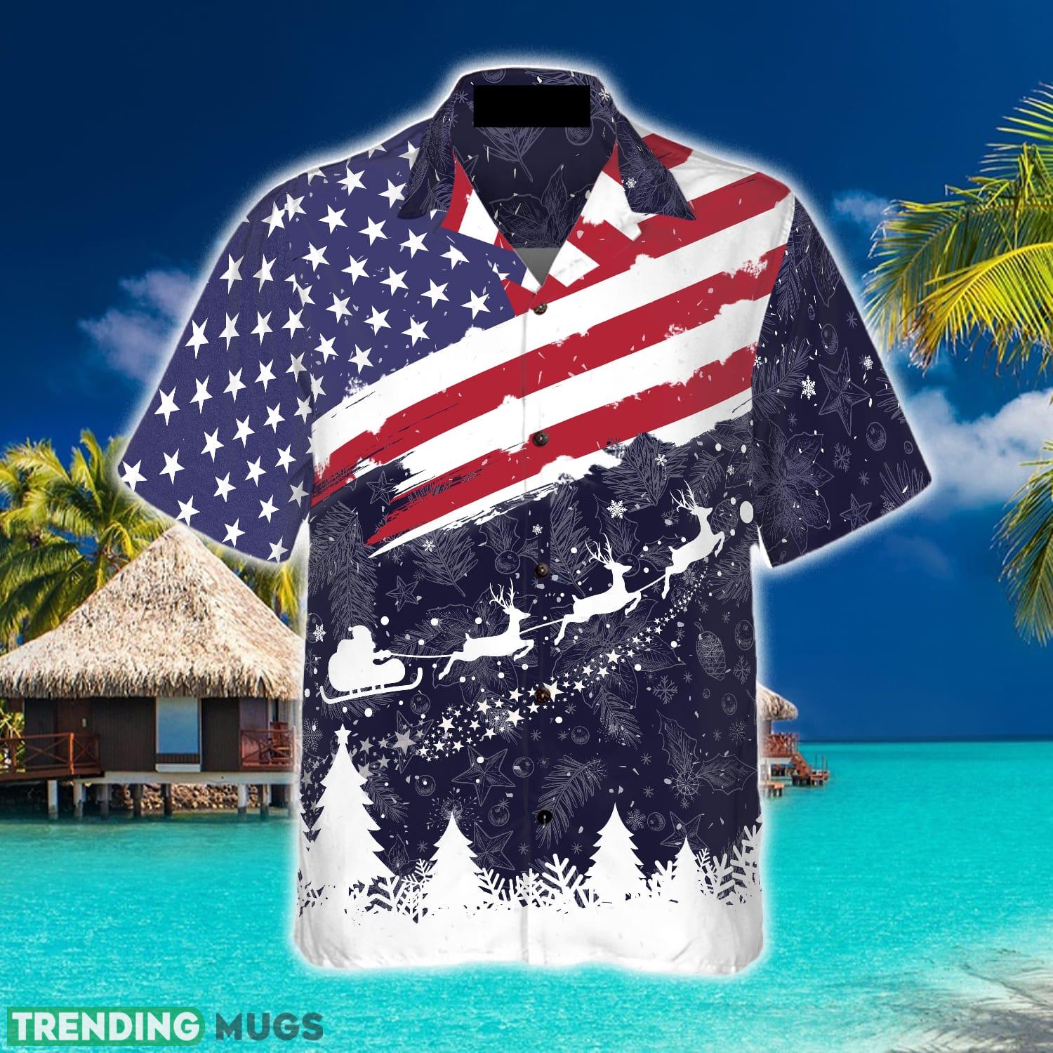 Christmas Hawaiian Shirts Merry Christmas USA Flag Christmas Shirt Idea Gift For Men And Women Details: