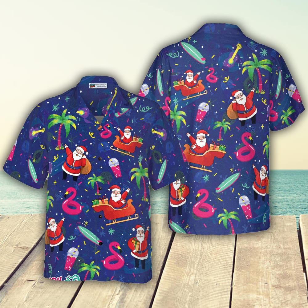 Christmas Hawaiian Shirts, Santa Flamingo Tropical Pattern Shirt Short Sleeve, Christmas Shirt Idea Gift For Men And Women – 230523-104326