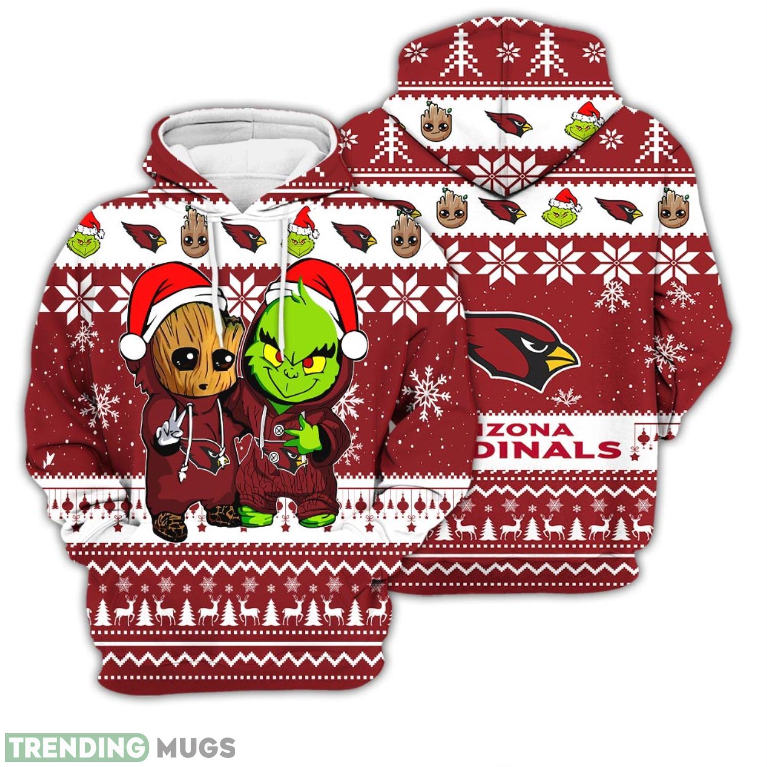 Some of the Christmas Hoodie Arizona Cardinals Baby Groot And Grinch Best Friends Unisex 3D Hoodie photos