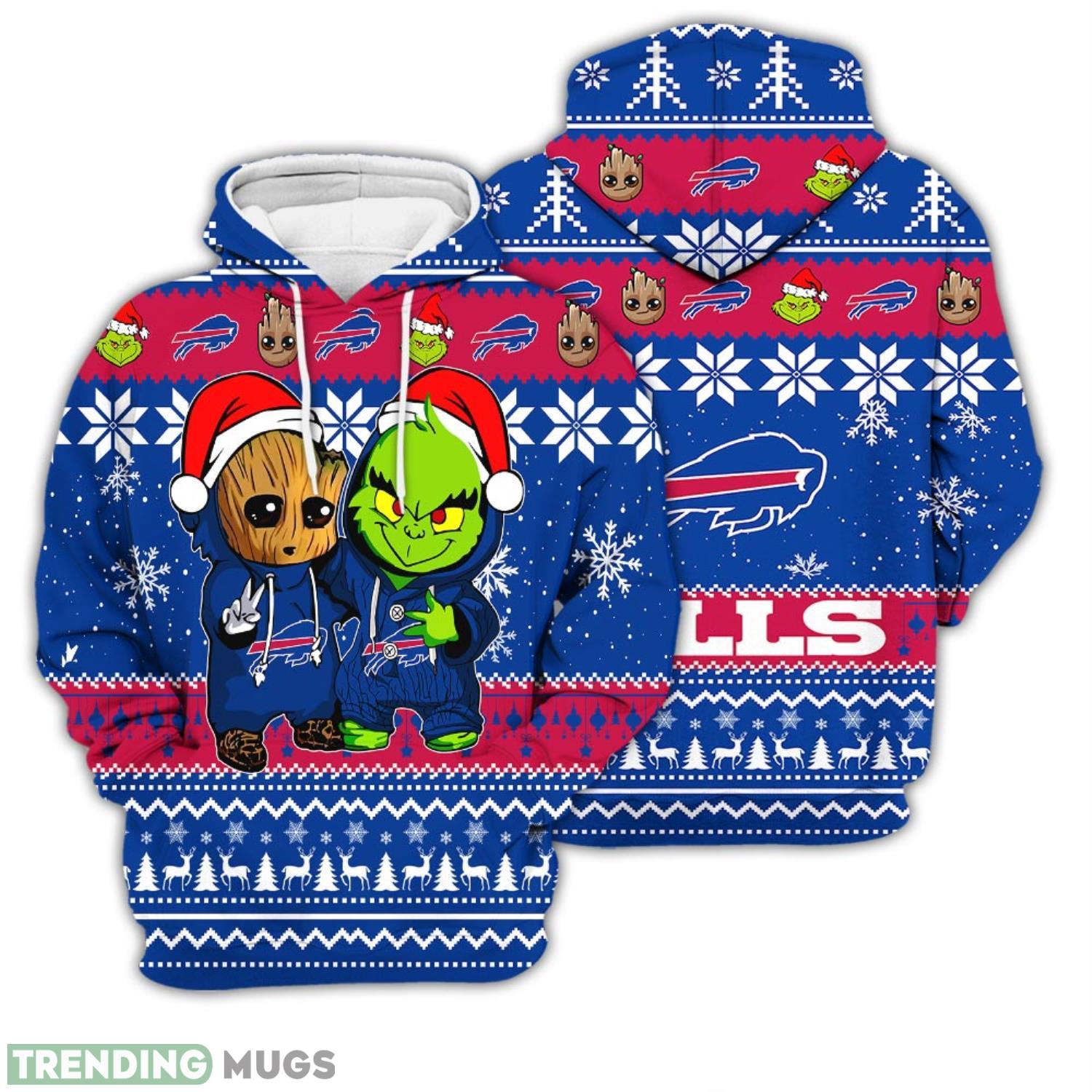 Christmas Hoodie Buffalo Bills Baby Groot And Grinch Best Friends Unisex 3D Hoodie Information