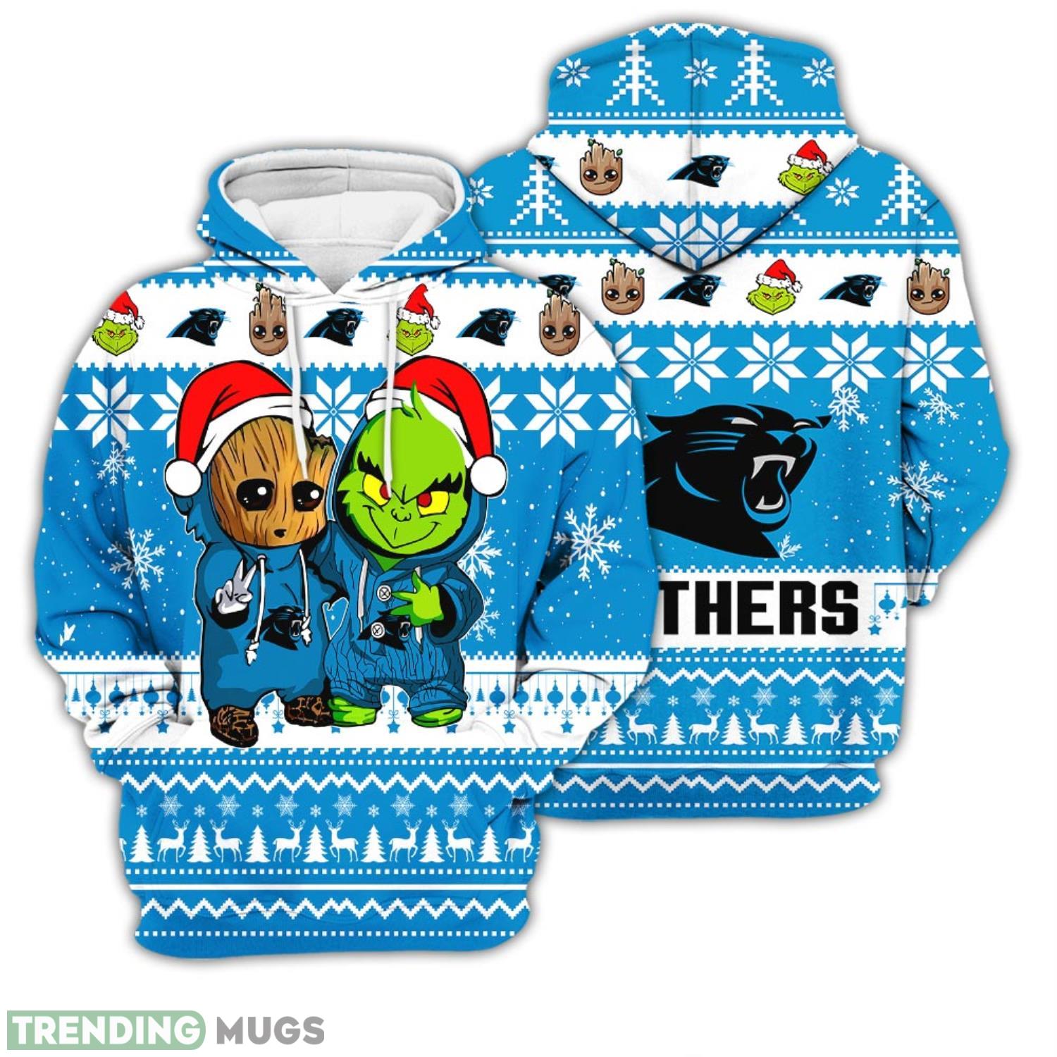 Some of the Christmas Hoodie Carolina Panthers Baby Groot And Grinch Best Friends Unisex 3D Hoodie photos