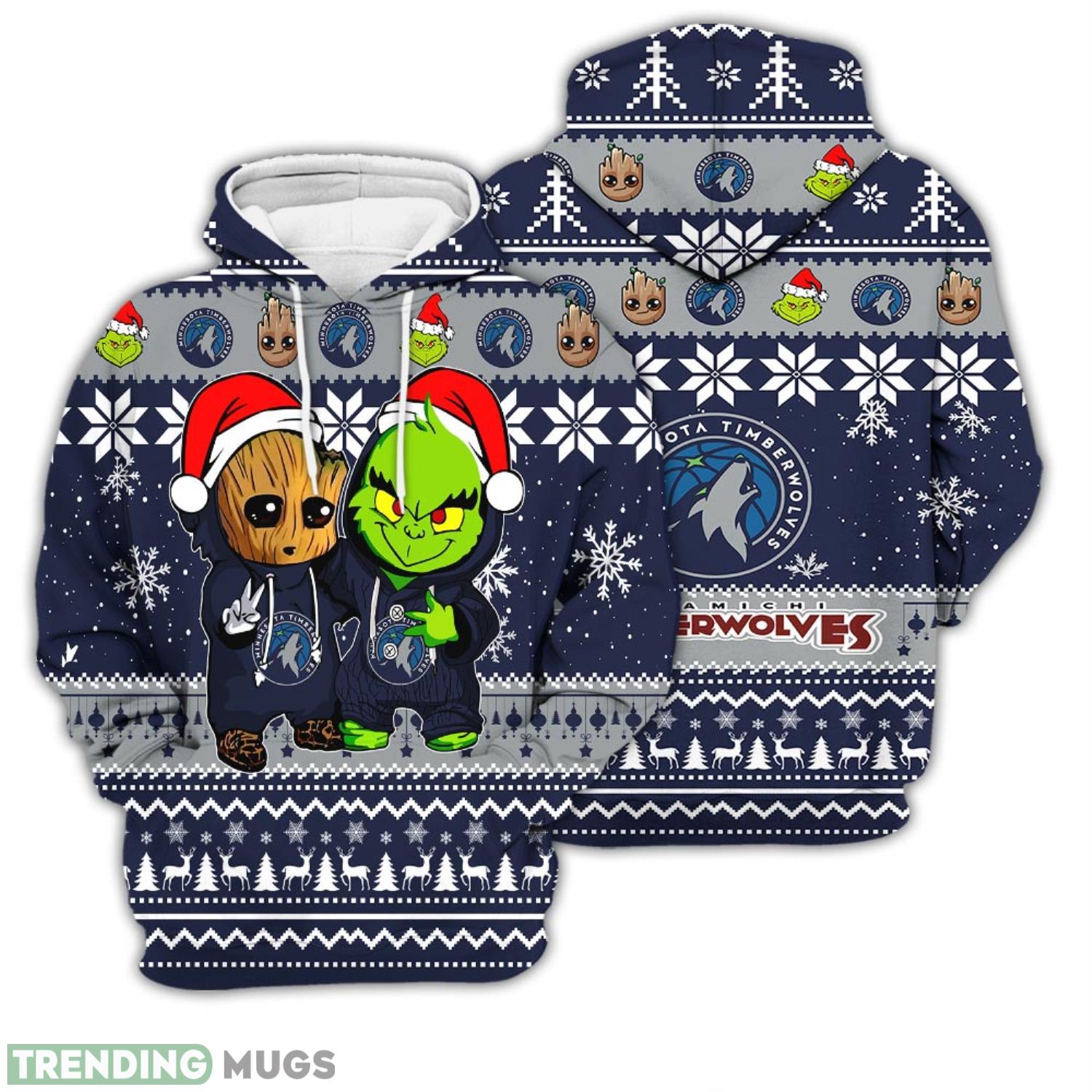 Some of the Christmas Hoodie Minnesota Timberwolves Baby Groot And Grinch Best Friends Unisex 3D Hoodie photos