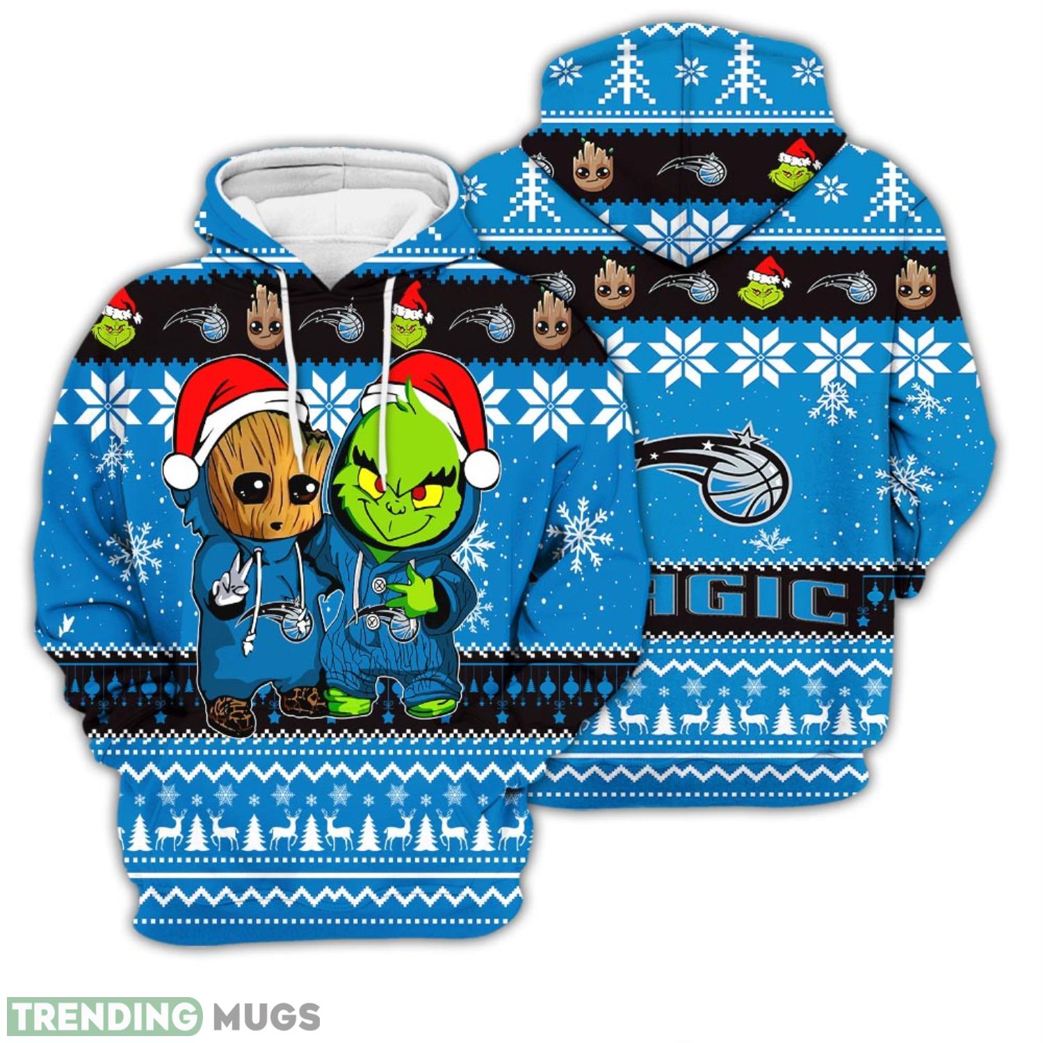 Christmas Hoodie Orlando Magic Baby Groot And Grinch Best Friends Unisex 3D Hoodie Information