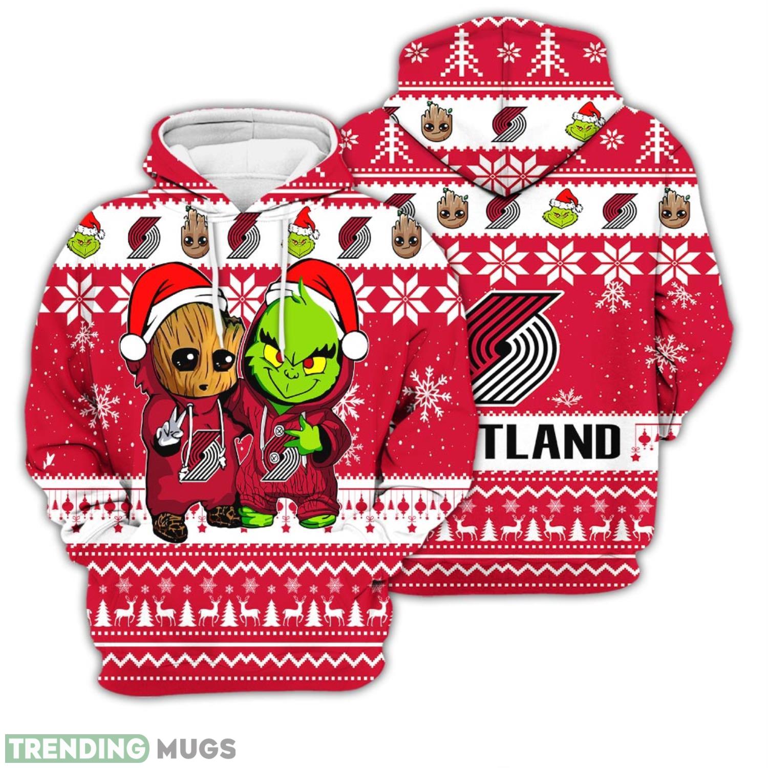 Christmas Hoodie Portland Trail Blazers Baby Groot And Grinch Best Friends Unisex 3D Hoodie Information