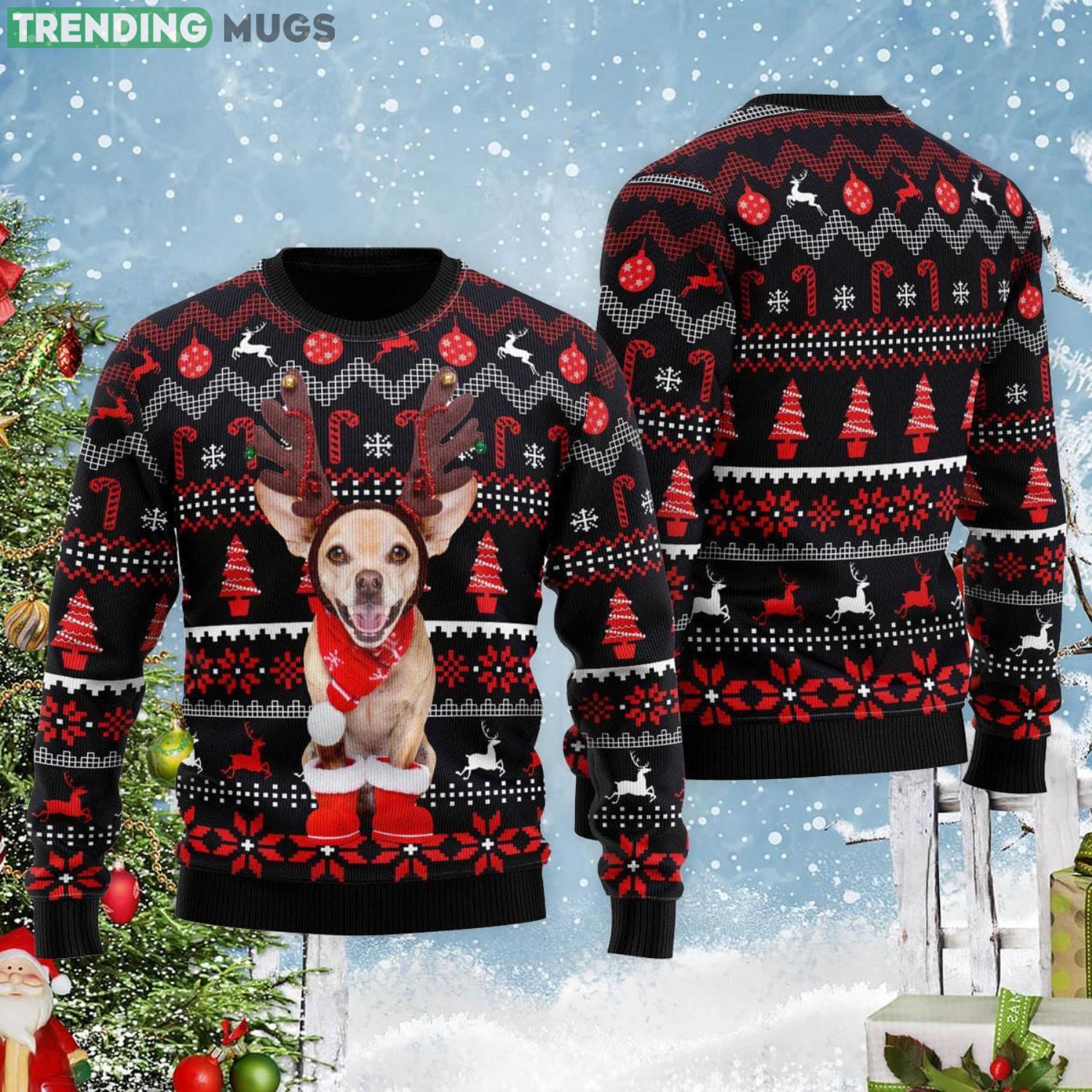 Christmas Santa Reindeer Dog Pattern Ugly Christmas Sweater Informations: