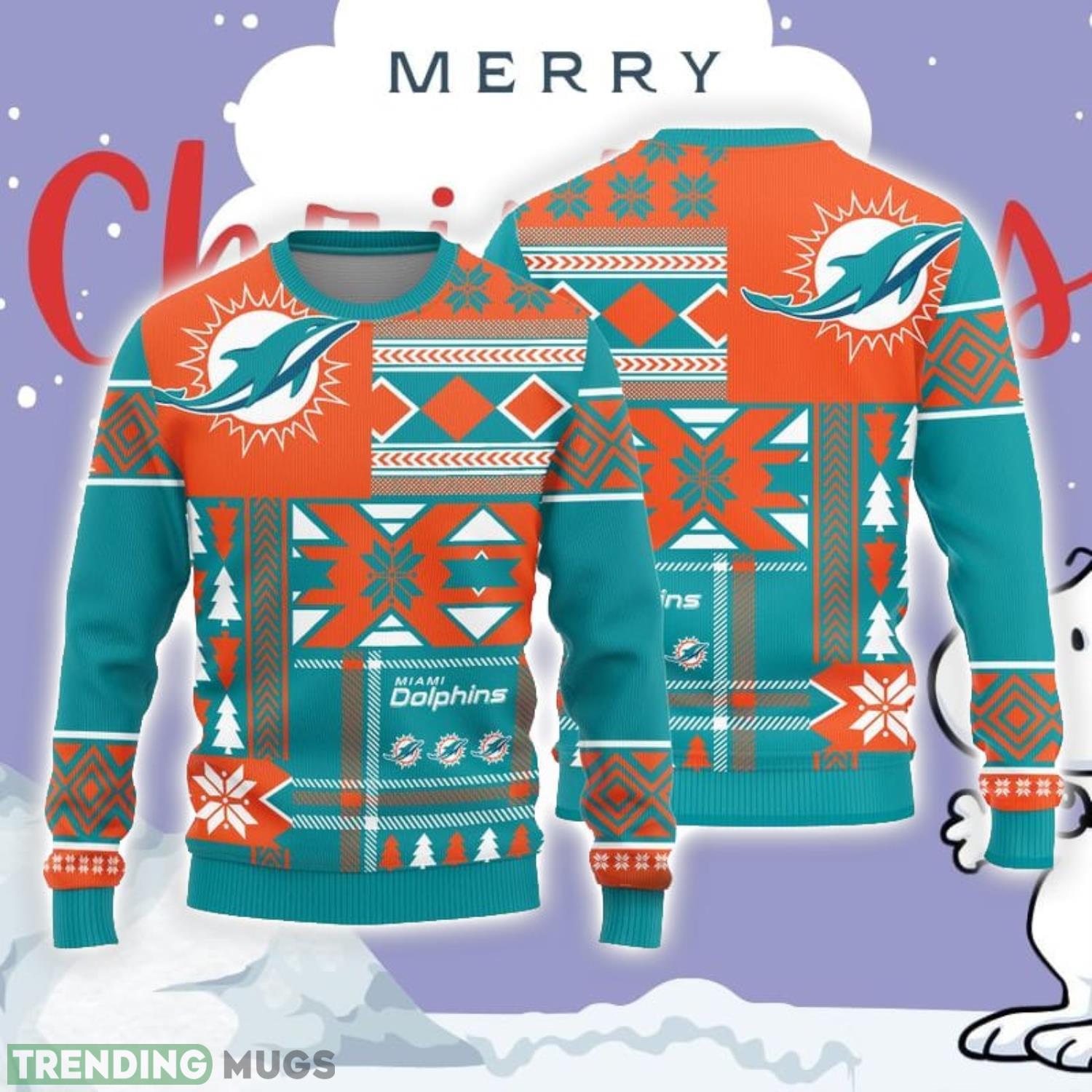 Don’t miss out on this one-of-a-kind limited edition sweater. Show your team pride and spread the holiday cheer with our Christmas Sweater Miami Dolphins Christmas Snowflakes Pattern! Upgrade your holiday wardrobe today and let your Dolphins fandom shine brighter than ever before.