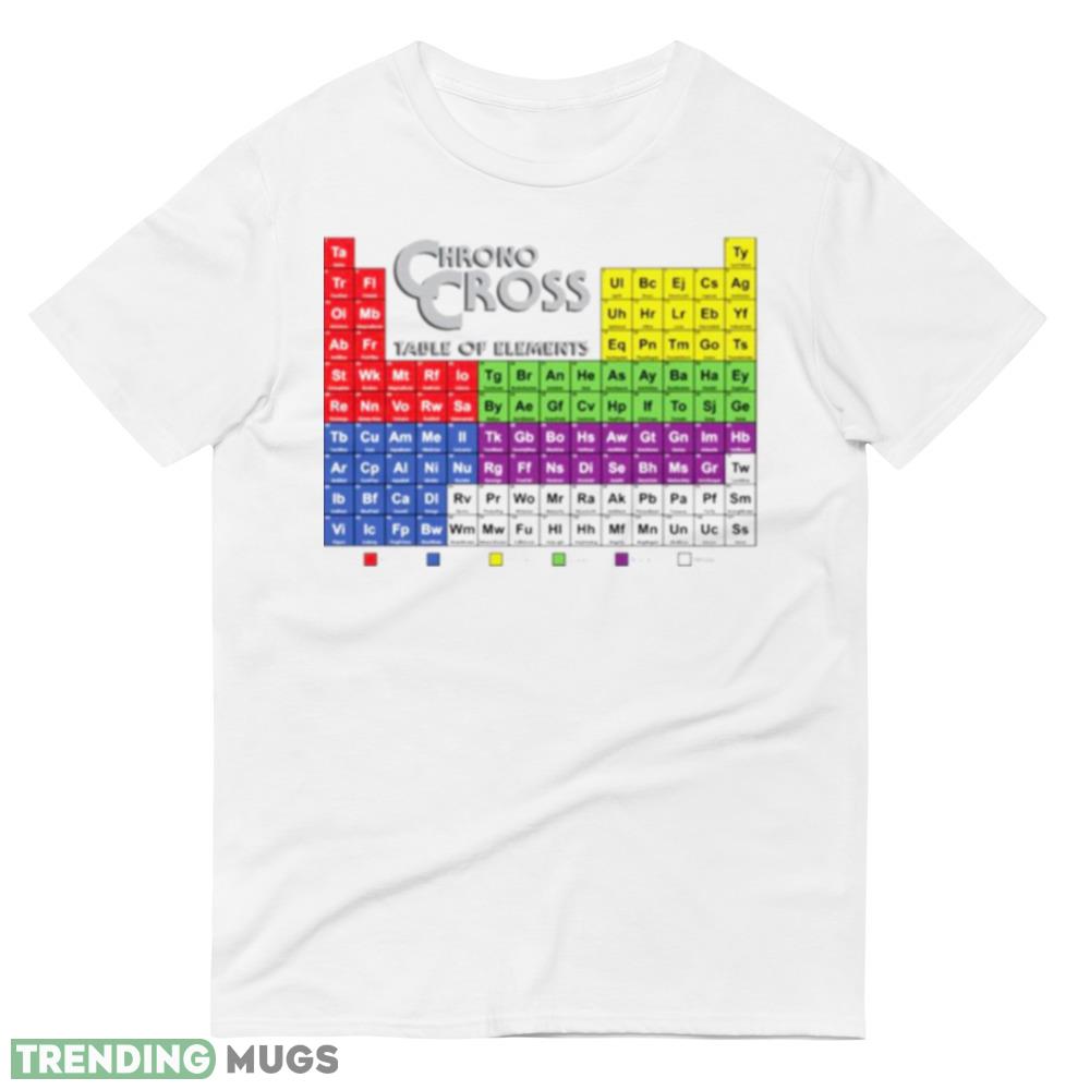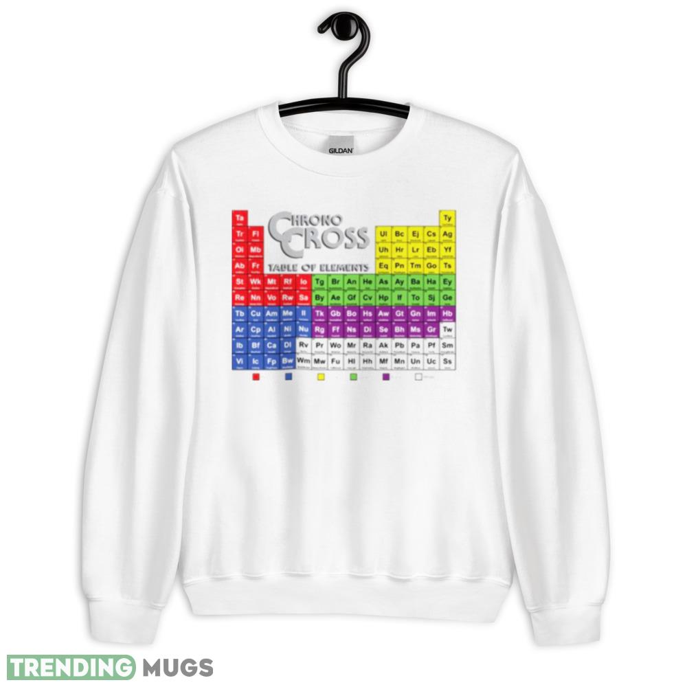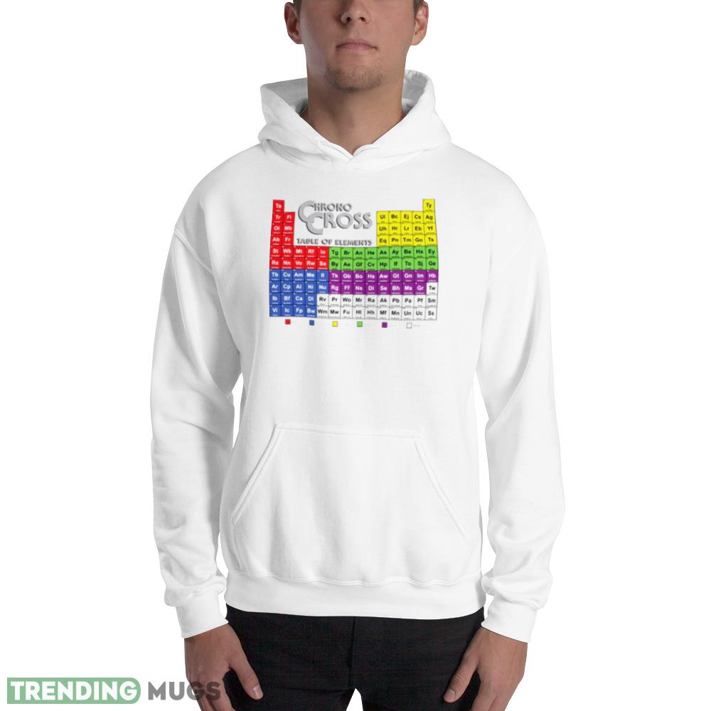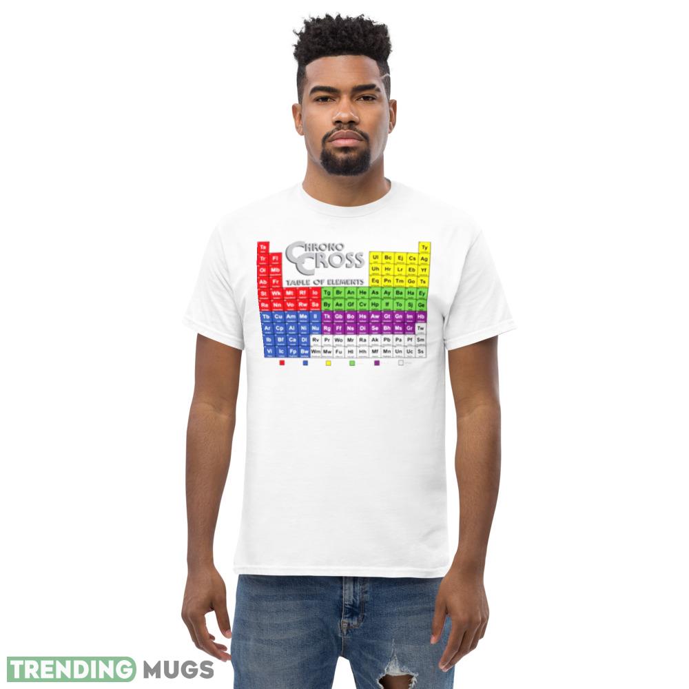 Experience the ultimate fusion of two timeless classics with the Chrono Cross Table Of Elements Chrono Trigger shirt. This stunning piece of apparel is a tribute to two of the most beloved RPGs of all time, featuring a unique design that highlights the iconic elements from both games.