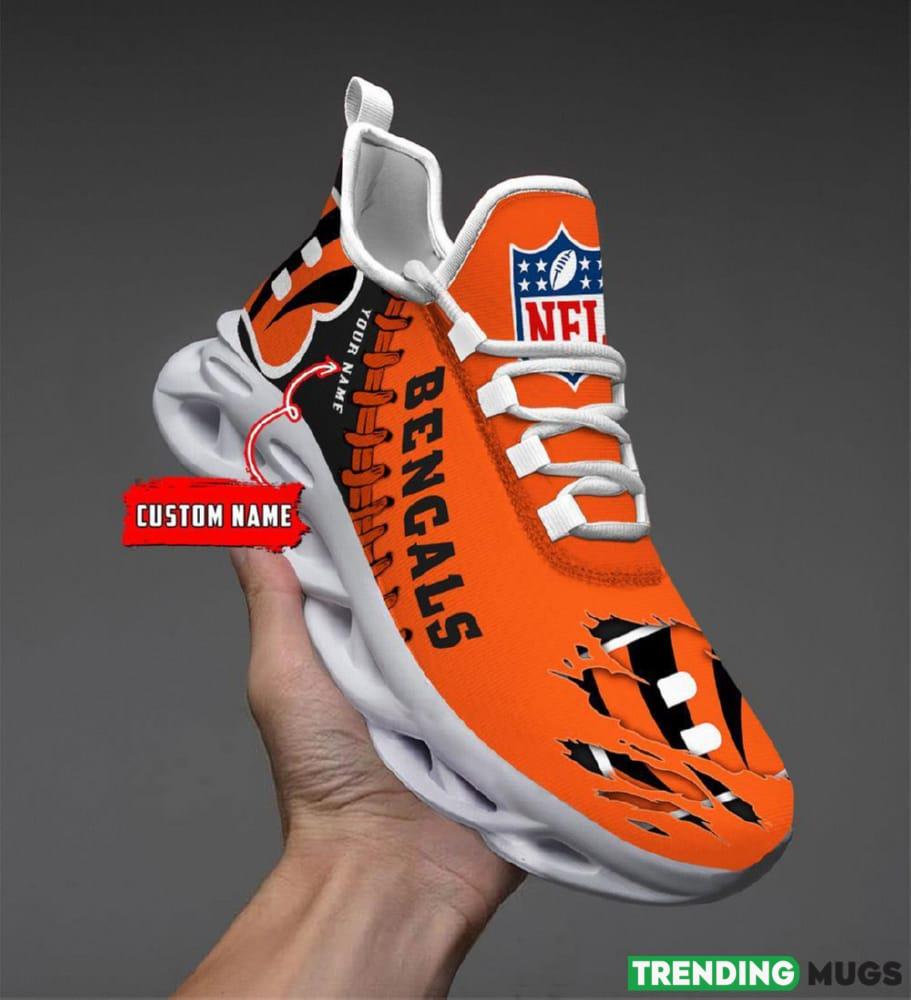 Featuring the iconic Cincinnati Bengals logo prominently displayed on each shoe, these custom name NFL Max Soul Shoes are a must-have for any true supporter. But what sets them apart is the ability to personalize them with your very own name, making them even more special and one-of-a-kind.