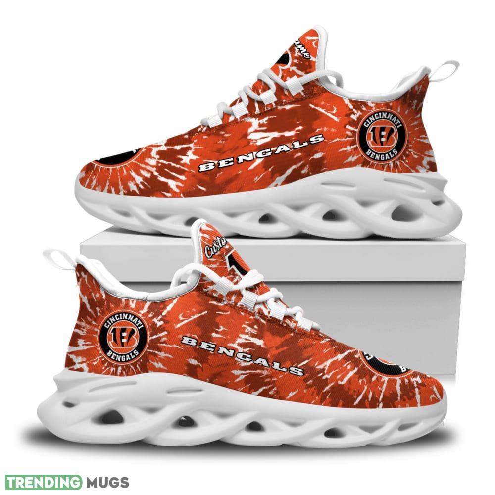 Don’t miss out on this one-of-a-kind opportunity to show off your Bengals fandom in style. Order your Cincinnati Bengals Custom Name Tie Dye Max Soul Sneaker Shoes For Fans today and step up your game day fashion game.