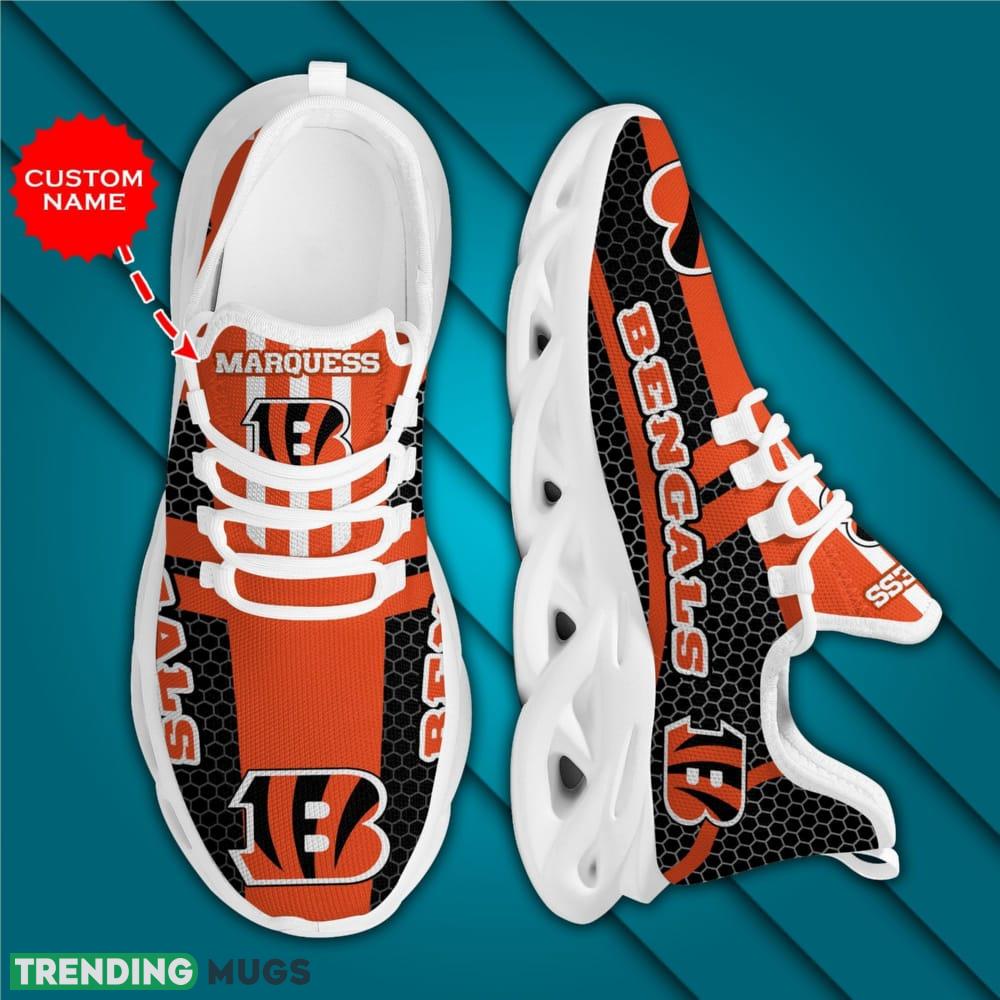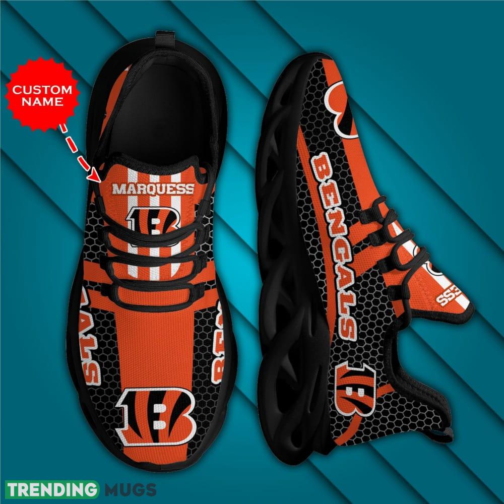Embrace the opulence and sophistication that our Cincinnati Bengals Designer Custom Name Max Soul Shoes offer. Elevate your style game, show off your team spirit, and enjoy the comfort that these luxury shoes provide. Order yours today and step into a world where fashion meets fandom!
