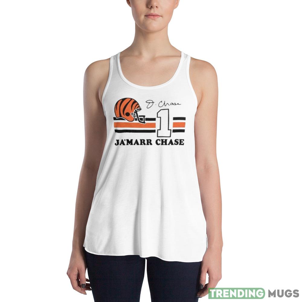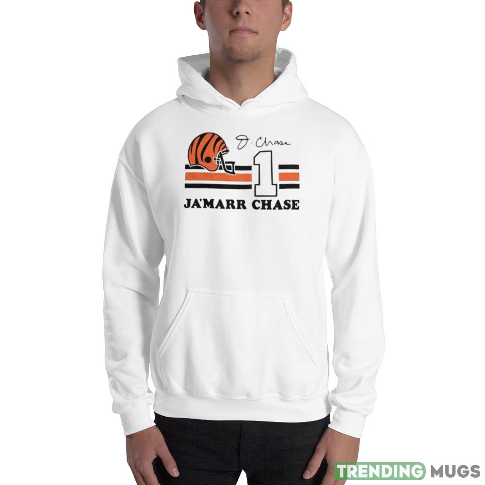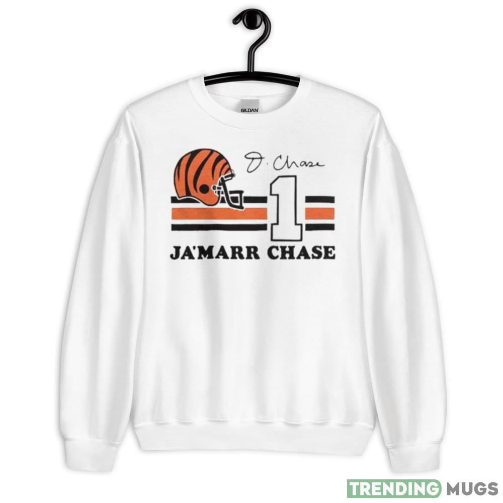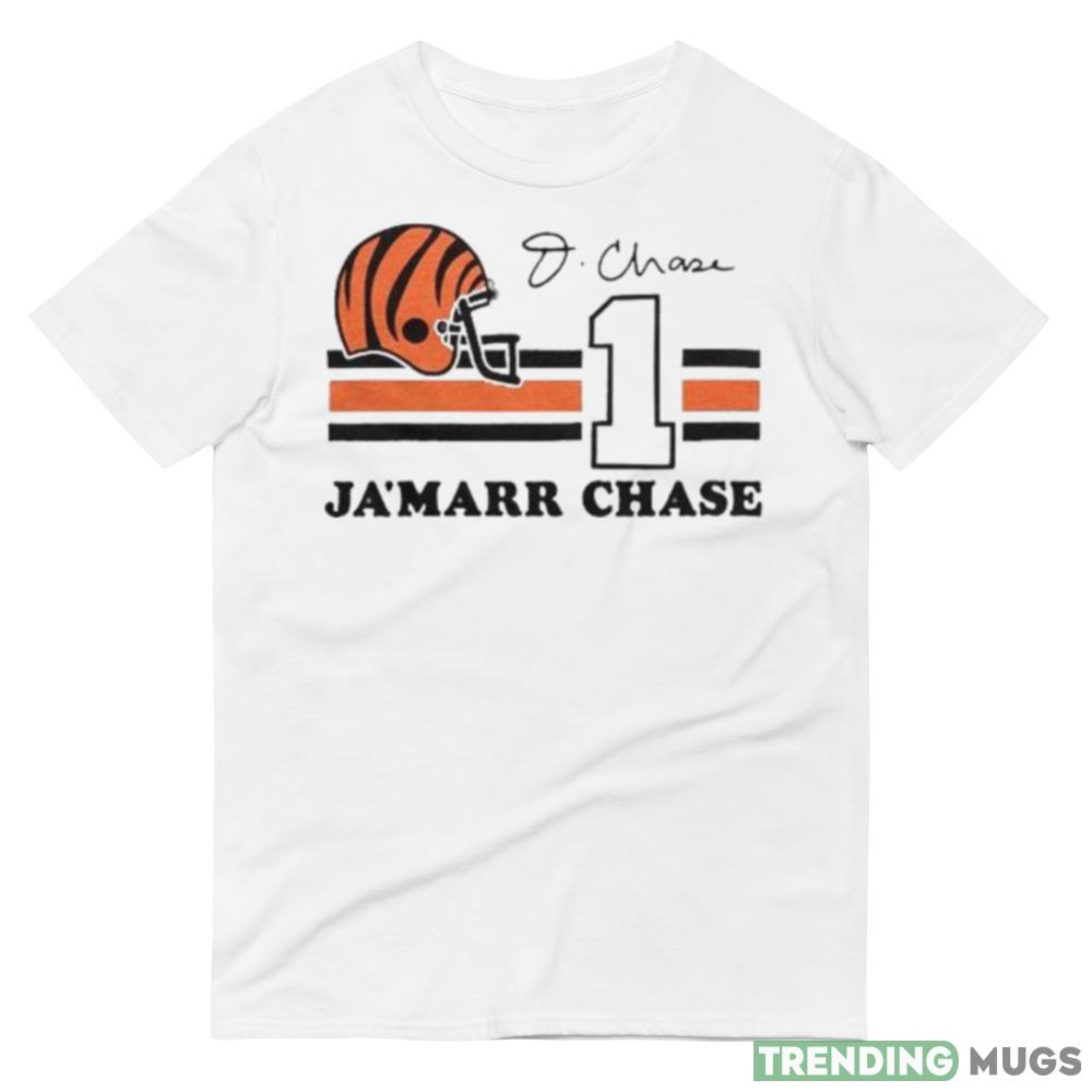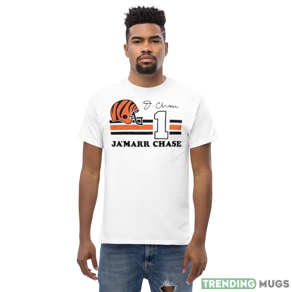 Show off your love for the Cincinnati Bengals with the Ja’Marr Chase #1 Signature Shirt. This stylish shirt features the iconic Bengals logo and the signature of the team’s rising star, Ja’Marr Chase. Made from high-quality materials, this shirt is both comfortable and durable, making it perfect for game day or everyday wear. Whether you’re cheering on the Bengals from the stands or simply showing off your team pride, the Ja’Marr Chase #1 Signature Shirt is the perfect addition to your wardrobe. Get yours today and show everyone who you’re rooting for this season!