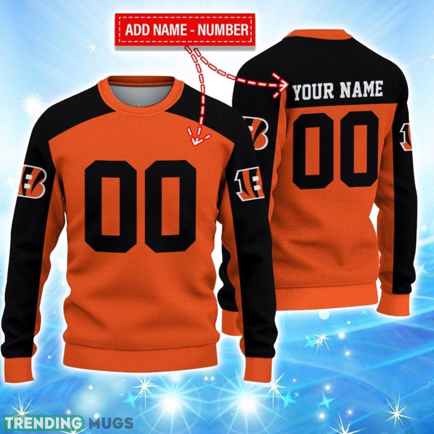 Cincinnati Bengals Limited Edition Knitted 3D Ugly Christmas Sweater Custom Name And Number Informations: