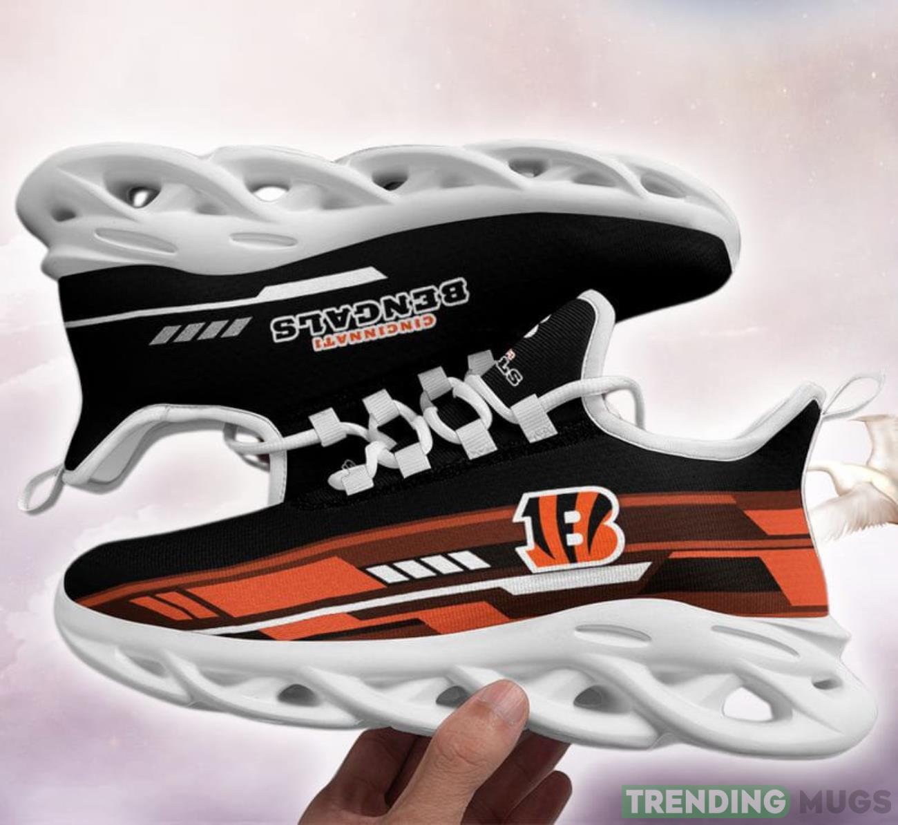 This Cincinnati Bengals Line Partern Limited Edition Max Soul Shoes is a breathable, lightweight, and comfortable casual outdoor shoe that has a unique design. It is made of a mesh fabric which makes it sweat absorbent and breathable, while the rubber bottom ensures traction, comfort, and durability. It is available in two colors: black or white sole. There are two styles of shoelace holes so you can choose your preference.