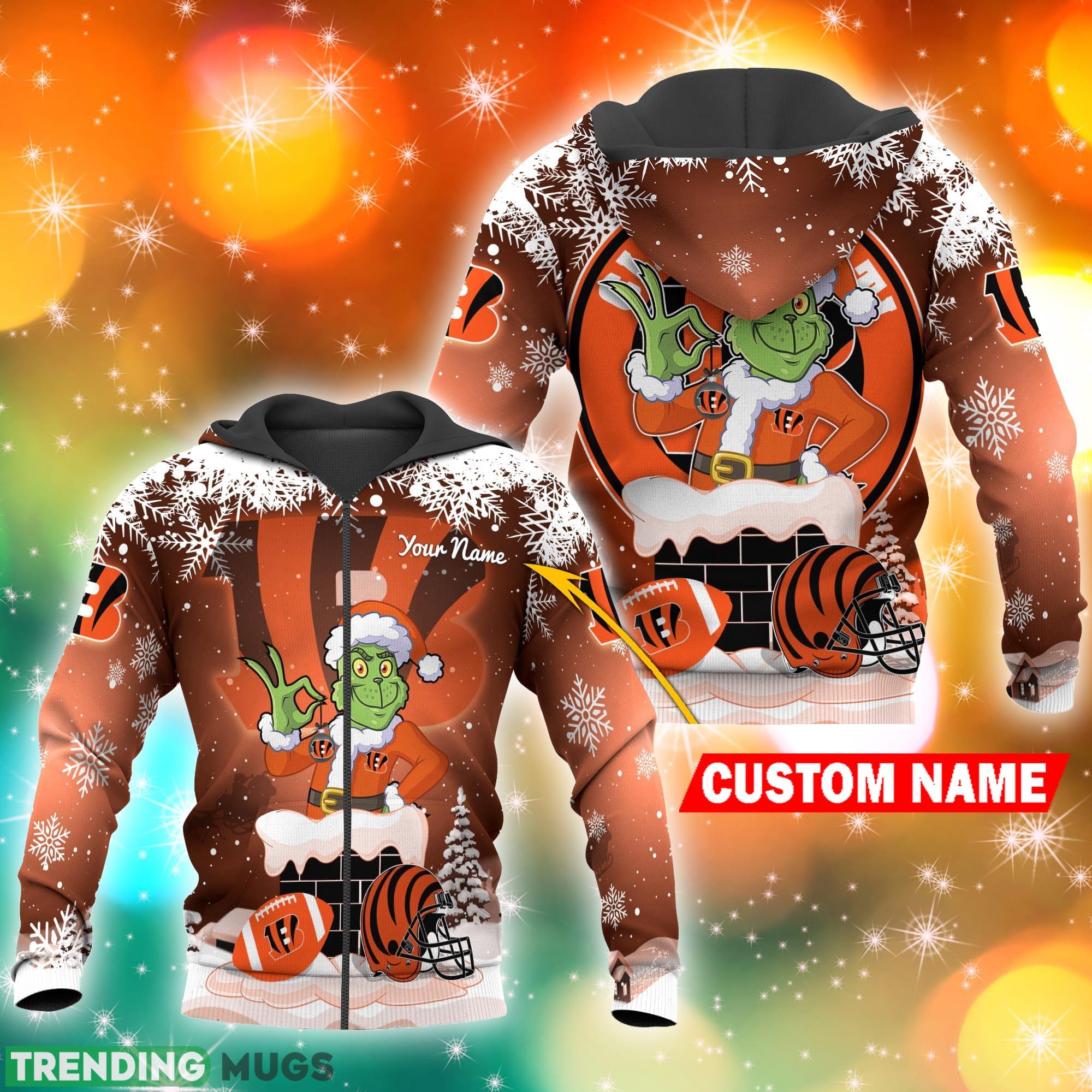 Cincinnati Bengals NFL Christmas Grinch in Chimney 3D Hoodie Pullover Prints Custom Name Information