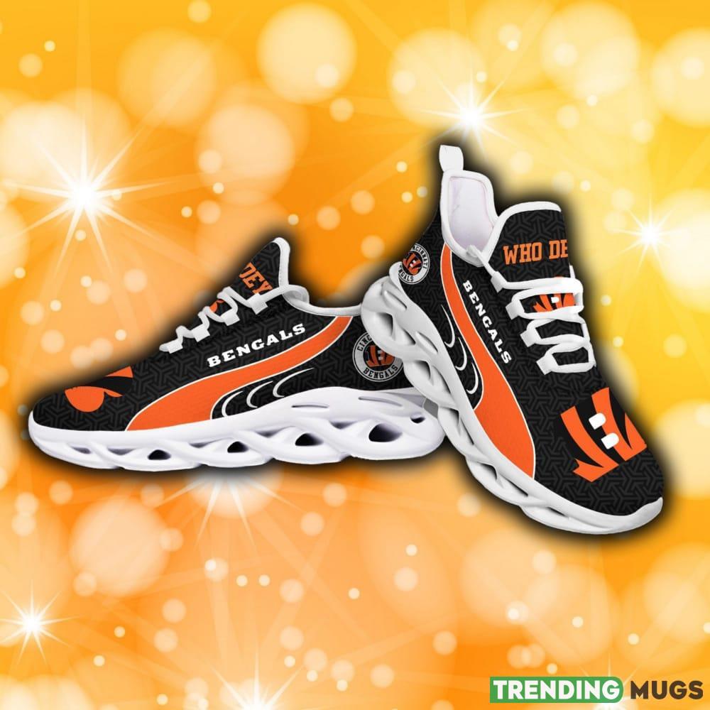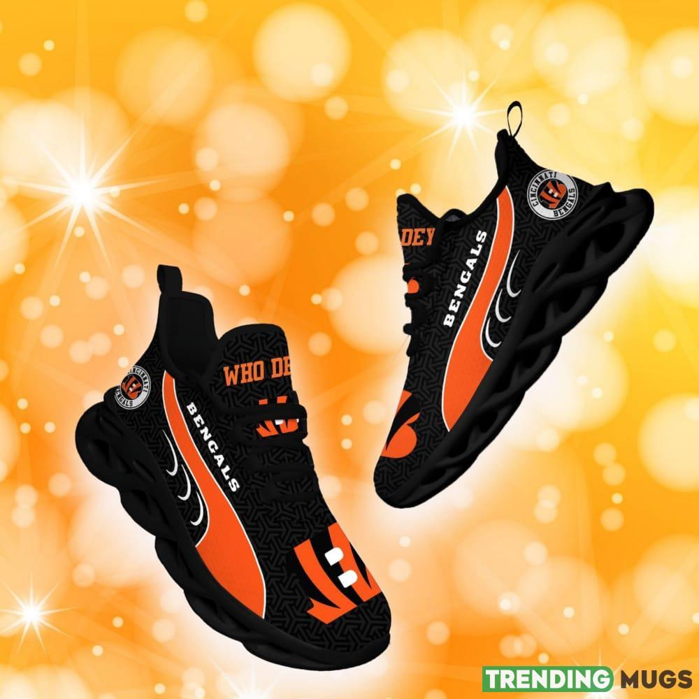 This Cincinnati Bengals NFL New Urbanite Max Soul Sneaker For Men And Women Sports Shoes Fans Gift is a breathable, lightweight, and comfortable casual outdoor shoe that has a unique design. It is made of a mesh fabric which makes it sweat absorbent and breathable, while the rubber bottom ensures traction, comfort, and durability. It is available in two colors: black or white sole. There are two styles of shoelace holes so you can choose your preference.