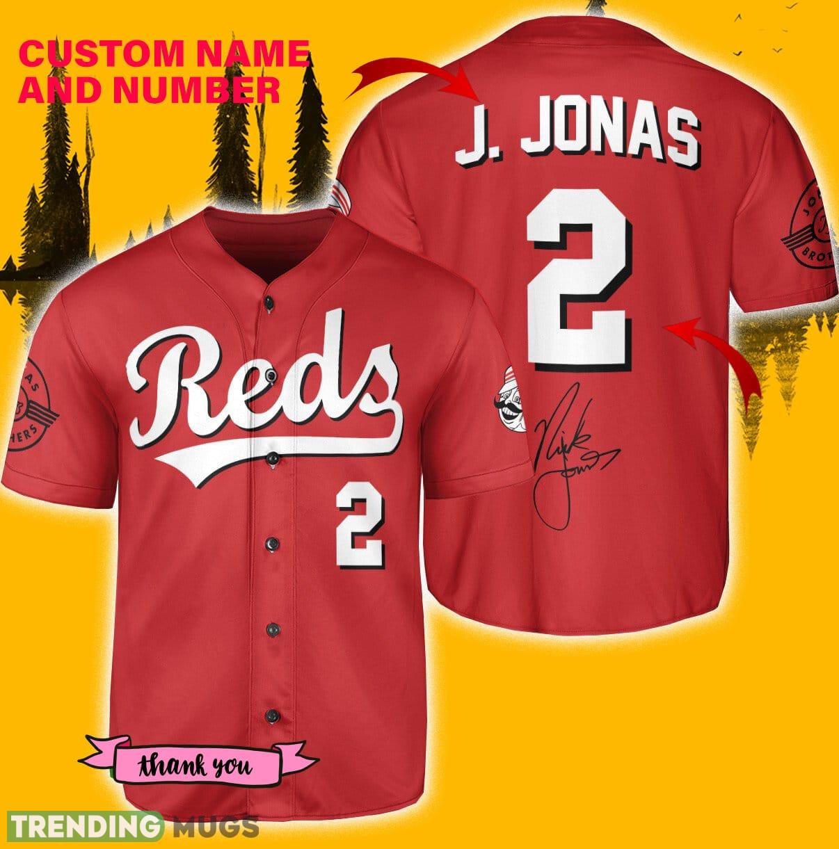 The Cincinnati Reds N. Jonas Red Custom Number And Name Baseball Jersey Shirt is the ultimate must-have for die-hard baseball fans. Show off your unwavering support for the Reds while sporting this stylish and personalized jersey shirt.