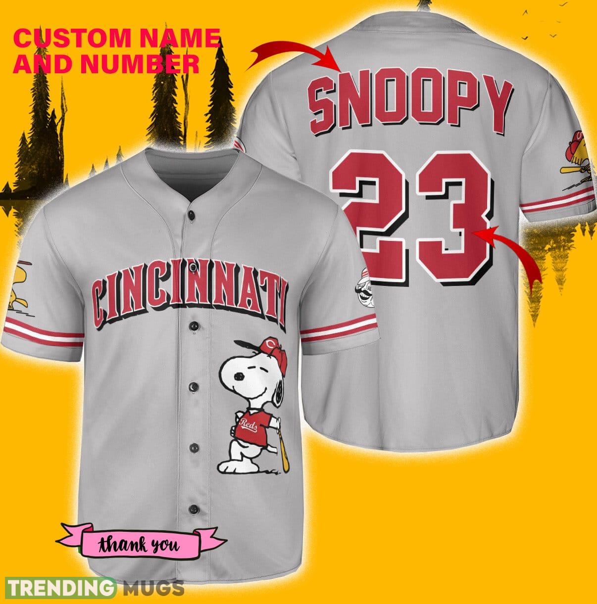 Cincinnati Reds Peanuts Snoopy Jersey Baseball Shirt Gray Custom Number And Name – Cincinnati Reds Peanuts Snoopy Baseball Jersey Gray_2
