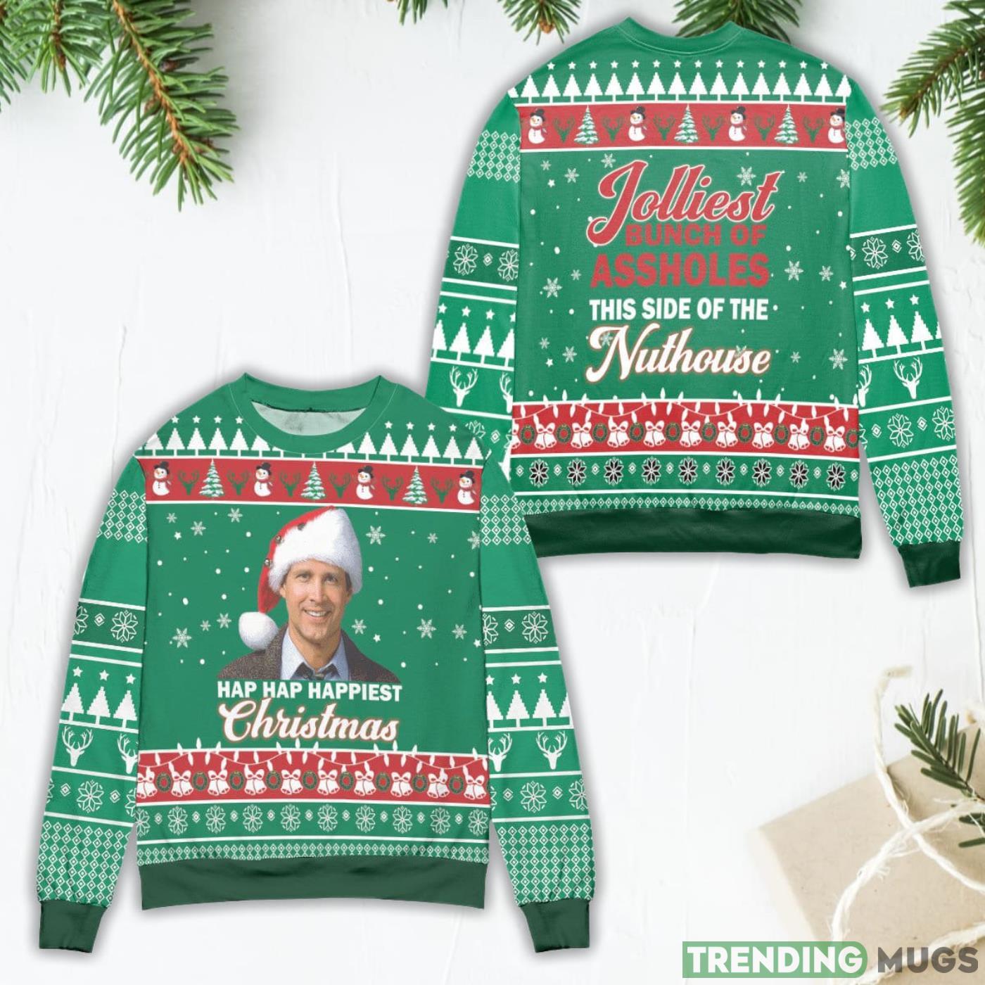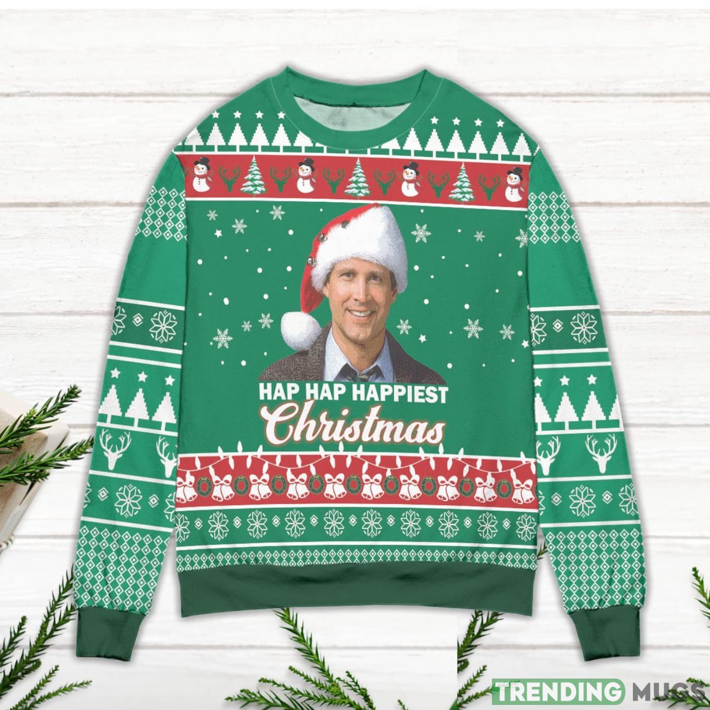Introducing the Clark Griswold Christmas Vacation Hap Hap Happiest Ugly Christmas Sweater! This stylish and festive sweater is the perfect addition to your holiday wardrobe. In the style of the iconic movie character, this sweater is made out of soft and cuddly fabric that will make you feel cozy and warm. It also features a fun and festive design that will bring joy to your eyes every time you wear it. Whether you’re dressing up for a holiday party or just want to add a little extra warmth to your everyday wardrobe, the Clark Griswold Christmas Vacation Hap Hap Happiest Ugly Christmas Sweater is sure to please.