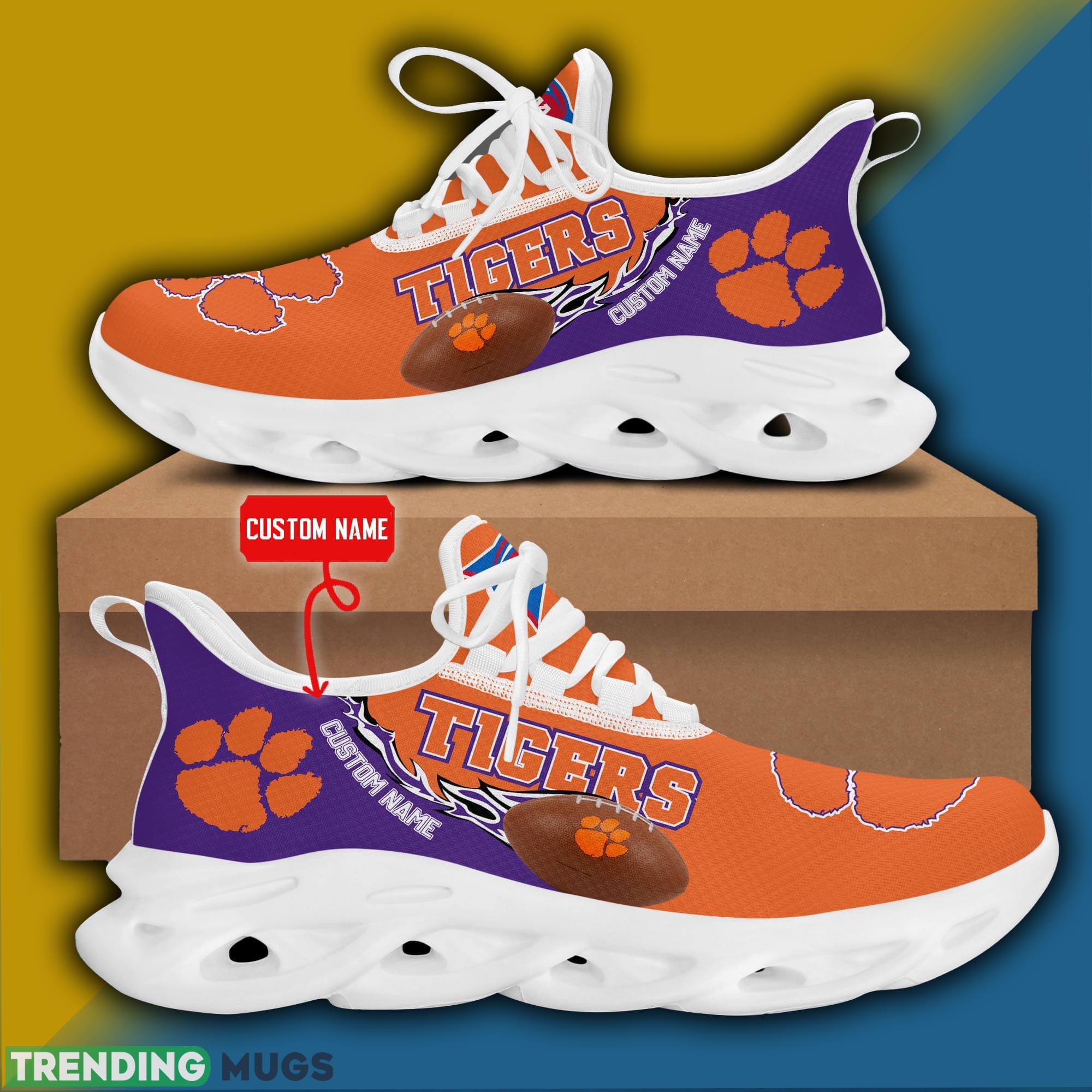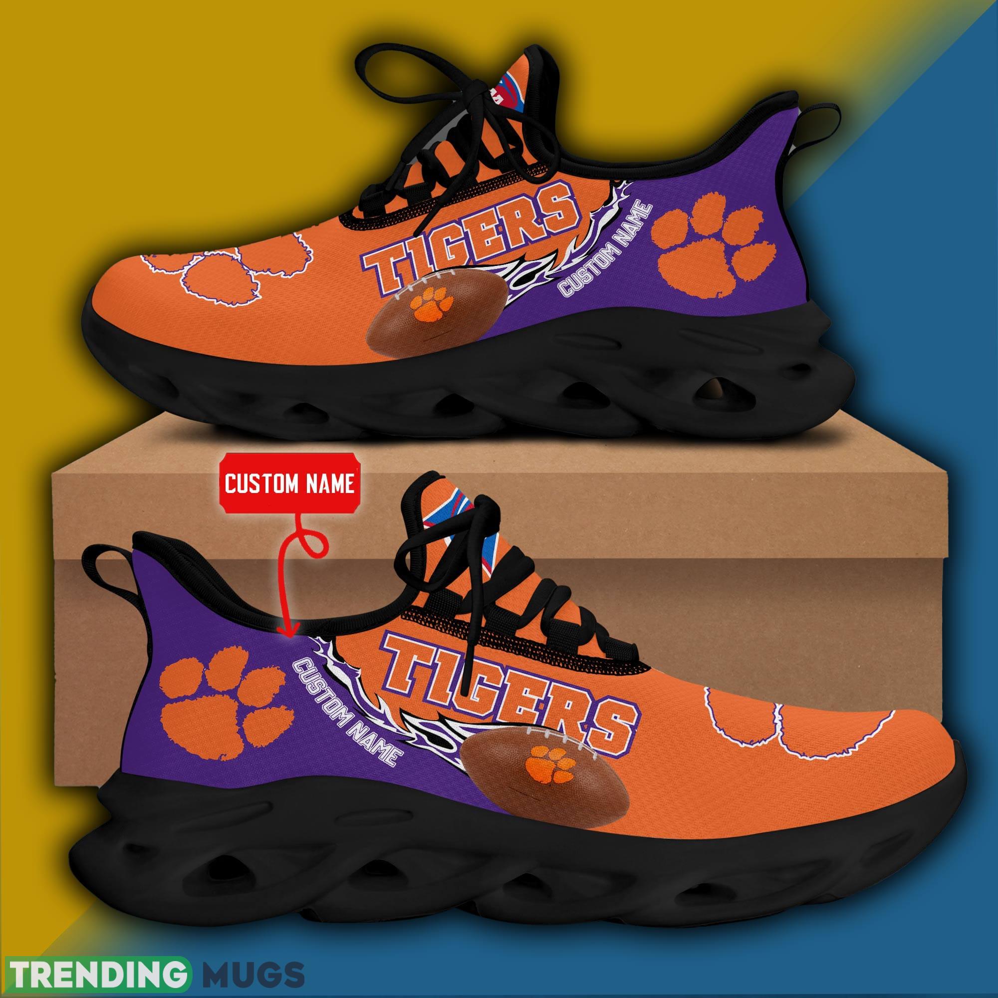 So why wait? Elevate your fan gear to new heights with the Clemson Tigers NCAA Logo New Style Max Soul Shoes Custom Name. Order yours today and step into game day with confidence and style.
