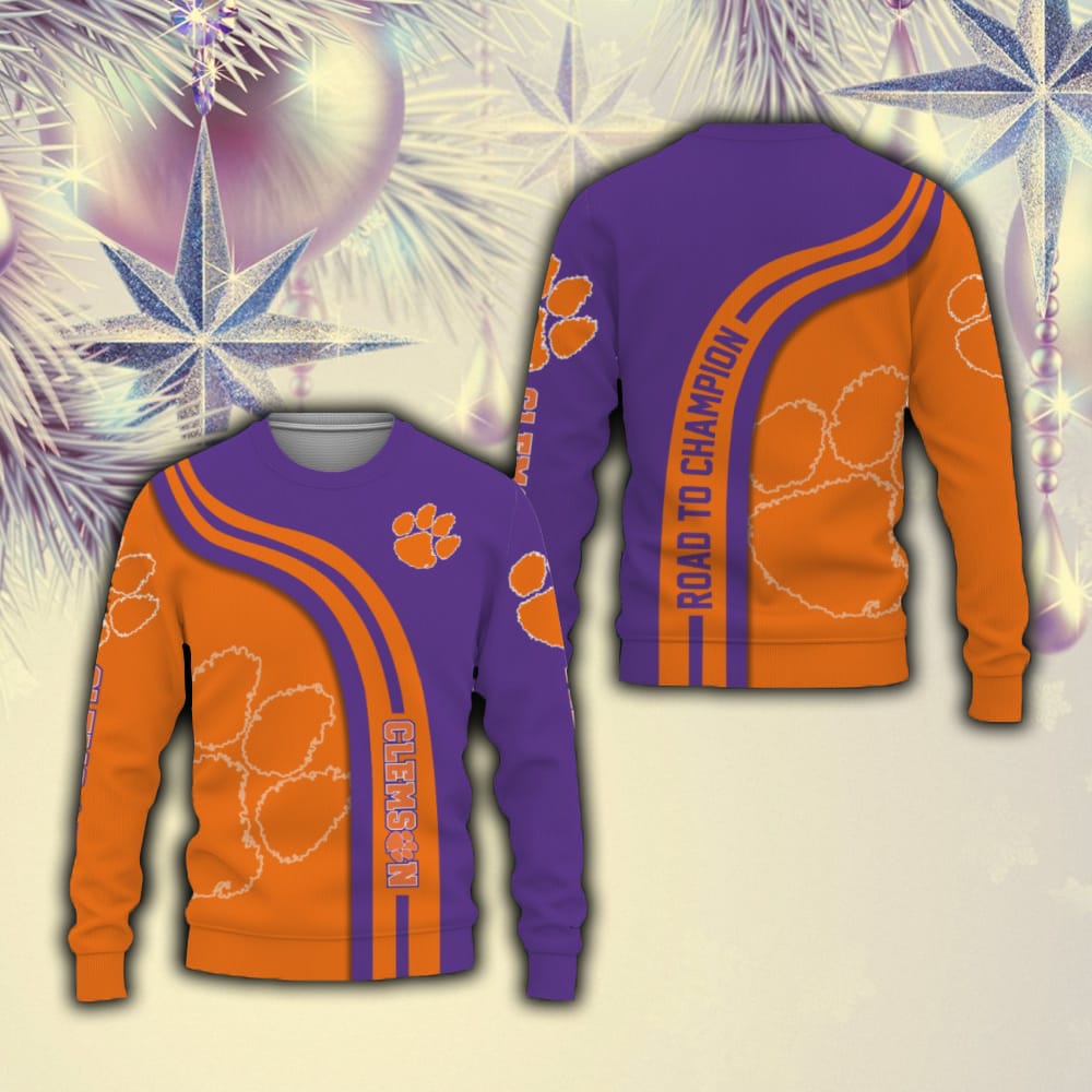 Whether you’re attending a holiday party, cheering on the Tigers from the comfort of your home, or searching for the perfect gift, the Clemson Tigers Sports American Teams Road To Champion Ugly Christmas Sweater is an absolute must-have. Show off your team pride, spread holiday cheer, and make this festive season a memorable one with this extraordinary sweater.