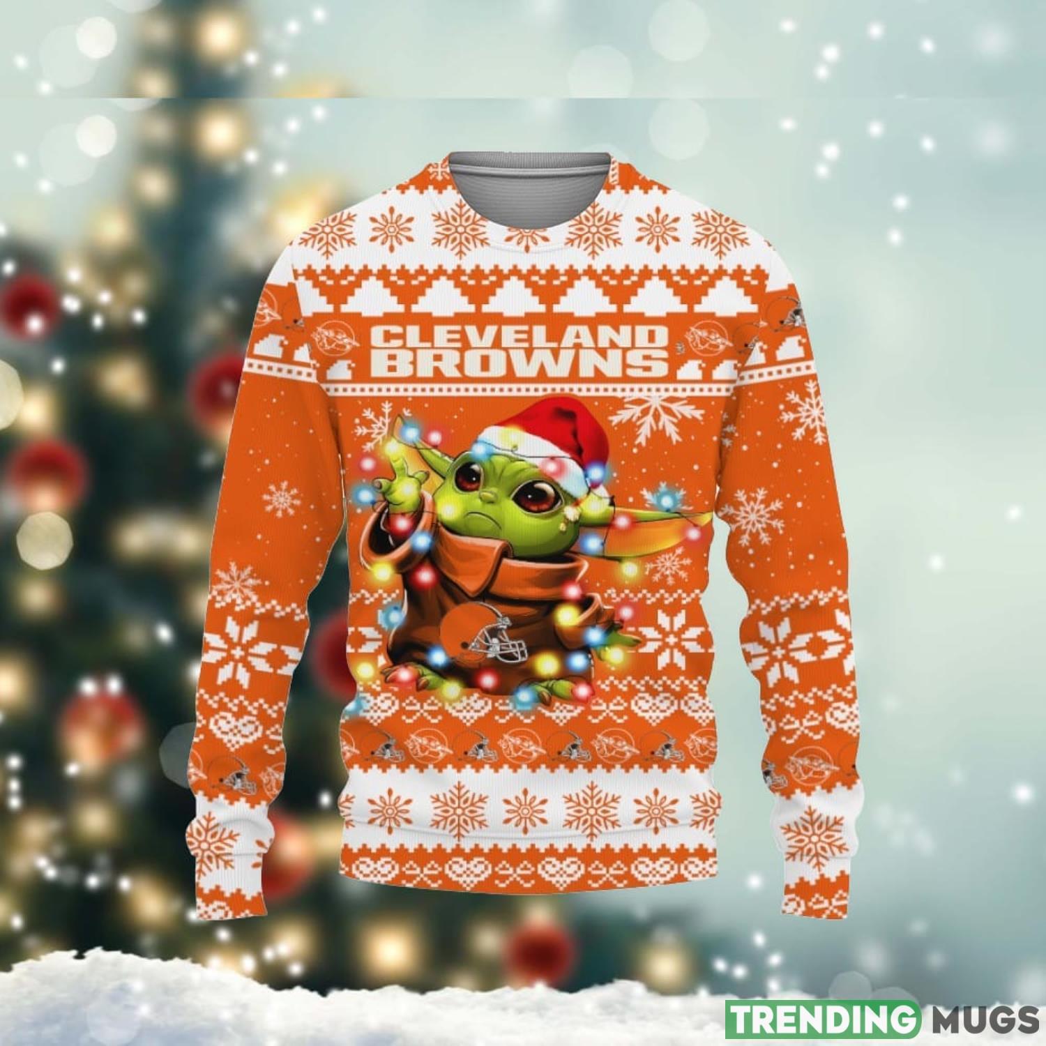 Cleveland Browns Baby Yoda Star Wars Christmas Gift 3D Ugly Christmas Sweater Christmas Gift Ideas Christmas Holiday Family Gift Product Photo 1