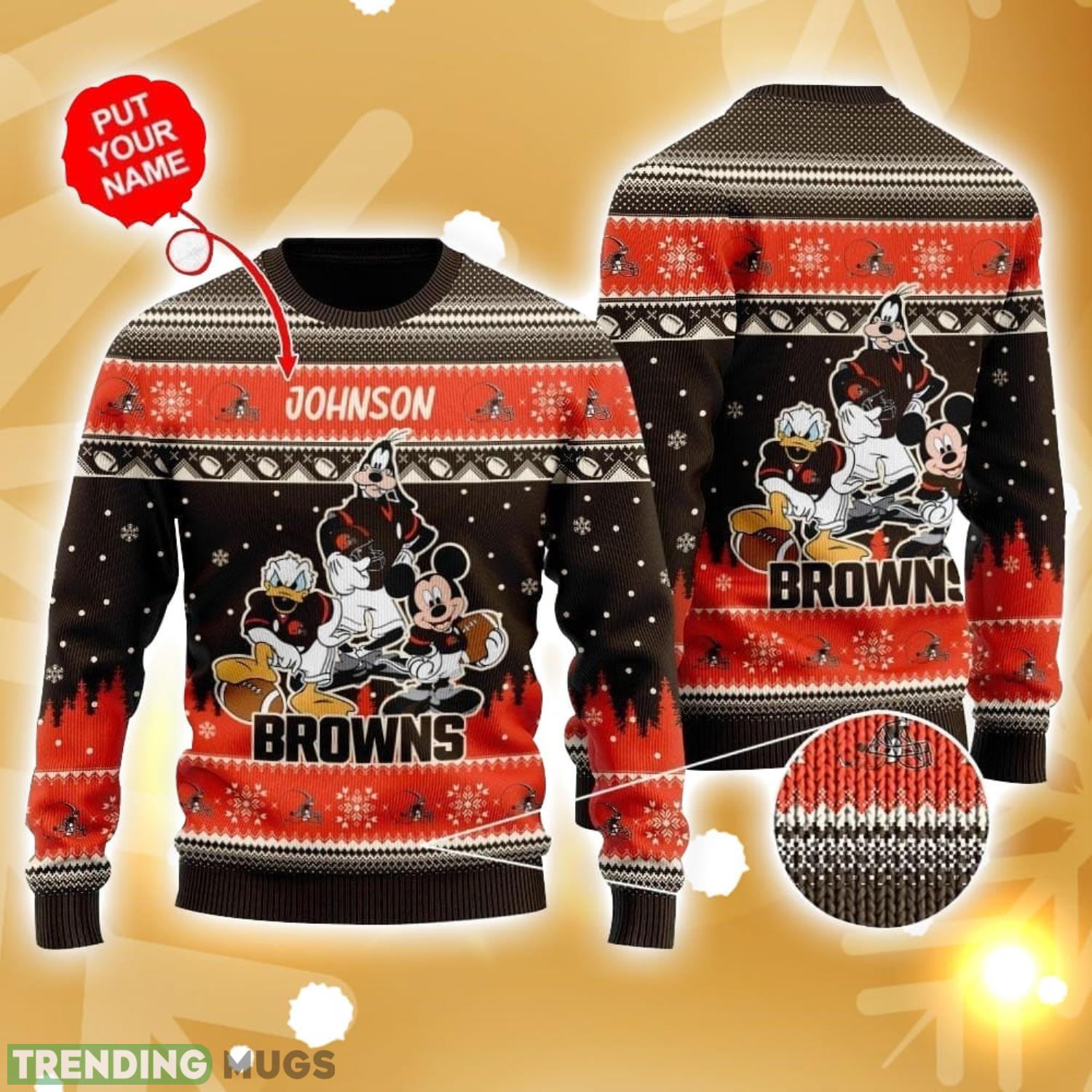 Cleveland Browns Disney Donald Duck Mickey Mouse Goofy Custom Name Sport Fans Christmas Gift Ugly Christmas Sweater Product Photo 1