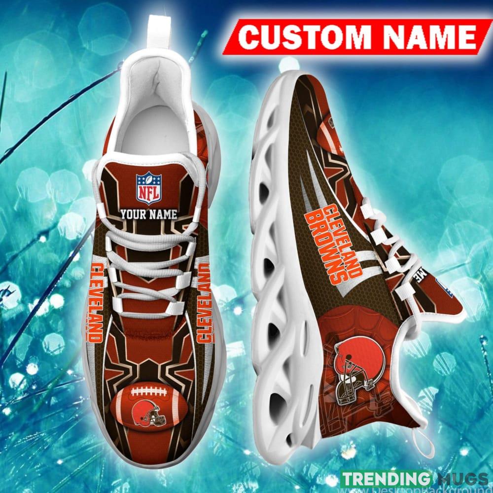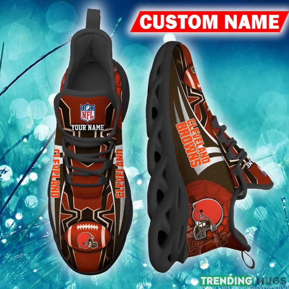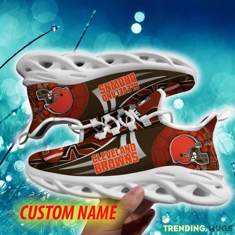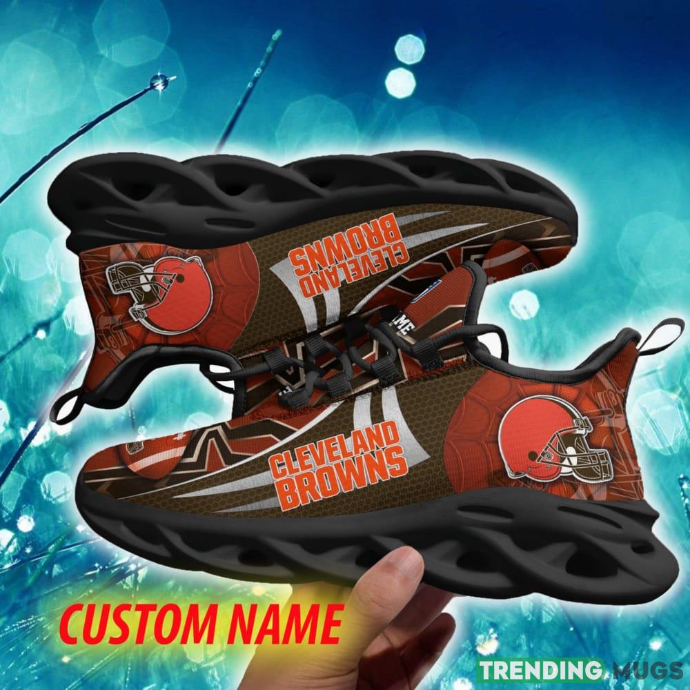 Featuring a bold and eye-catching design, these Max Soul Shoes are sure to turn heads wherever you go. The Cleveland Browns emblem is prominently displayed on the sides, ensuring that everyone knows where your allegiance lies. Plus, with the option to customize them with your own name, you can truly make these sneakers one-of-a-kind.
