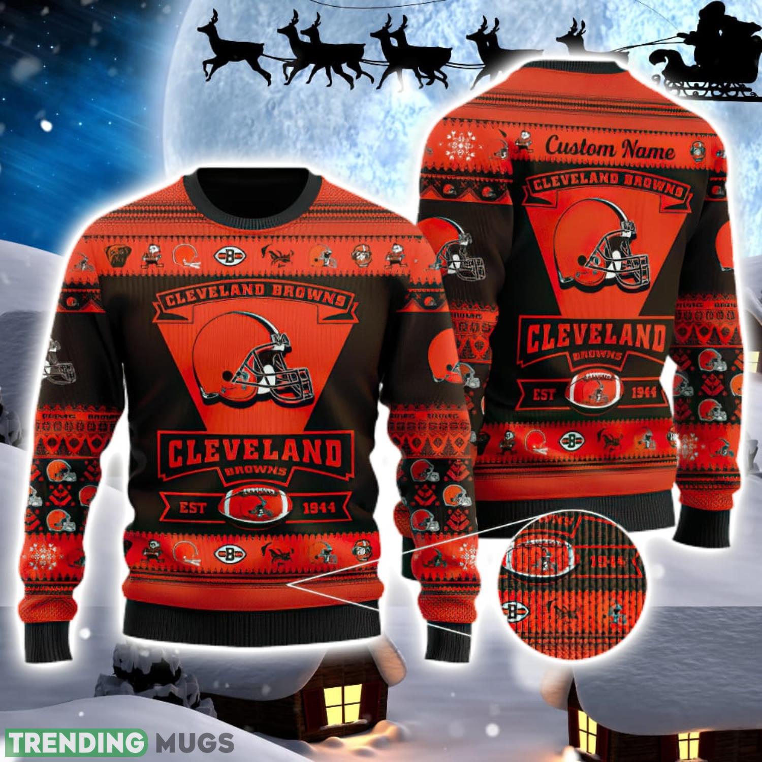 Get ready to show off your Cleveland Browns pride this holiday season with our Cleveland Browns Logo Custom Name For Football Fans Ugly Christmas Sweater! Made specifically for die-hard Browns fans like you, this festive sweater is the perfect way to spread some holiday cheer while showcasing your love for your favorite football team.