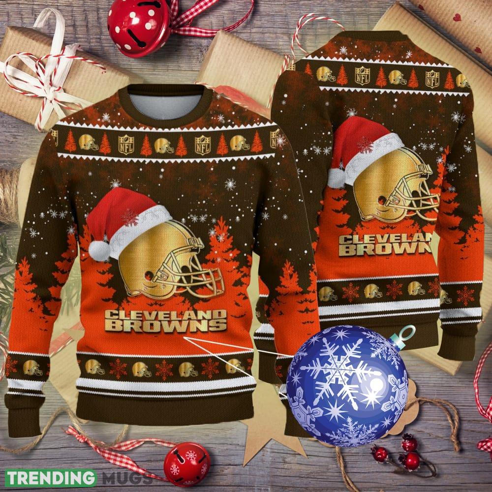 Cleveland Browns Logo Golden Fans Santa Hat Tree Ugly Christmas 3D Sweater Informations: