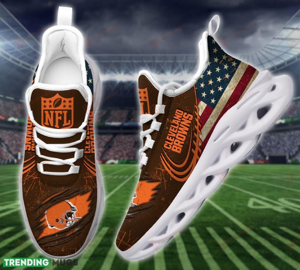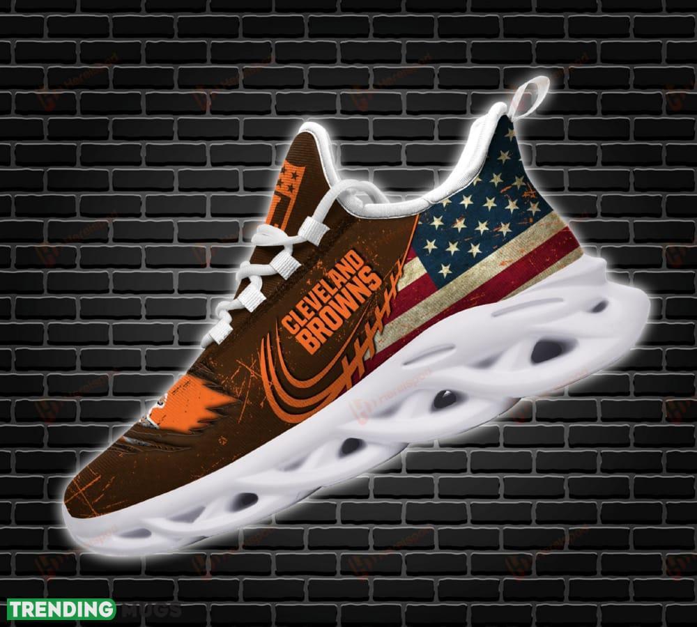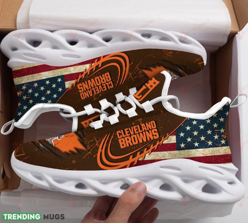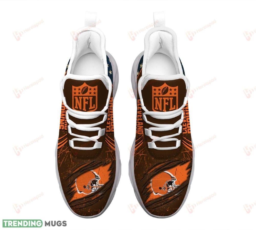 This Cleveland Browns Max Soul Shoes Edgy Men And Women Running Shoes is a breathable, lightweight, and comfortable casual outdoor shoe that has a unique design. It is made of a mesh fabric which makes it sweat absorbent and breathable, while the rubber bottom ensures traction, comfort, and durability. It is available in two colors: black or white sole. There are two styles of shoelace holes so you can choose your preference.