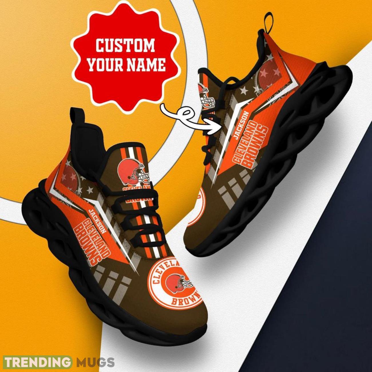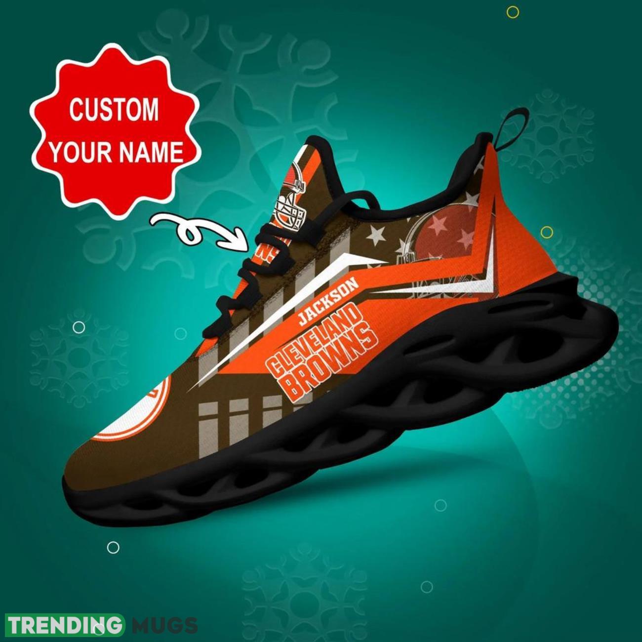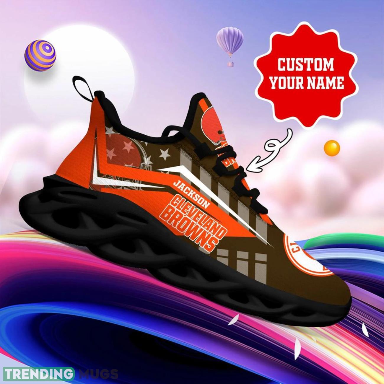 Show off your team spirit with our Cleveland Browns NFL Max Soul Shoes! These custom name sneakers are perfect for NFL big fans looking to personalize their style. Made with high-quality materials and featuring the iconic Browns logo, these shoes are a must-have for any die-hard fan. Whether you’re heading to the game or just want to rep your team on the streets, these personalized shoes will take your fan gear to the next level. Don’t miss out on the opportunity to sport your team pride in style – order your Cleveland Browns NFL Max Soul Shoes today!