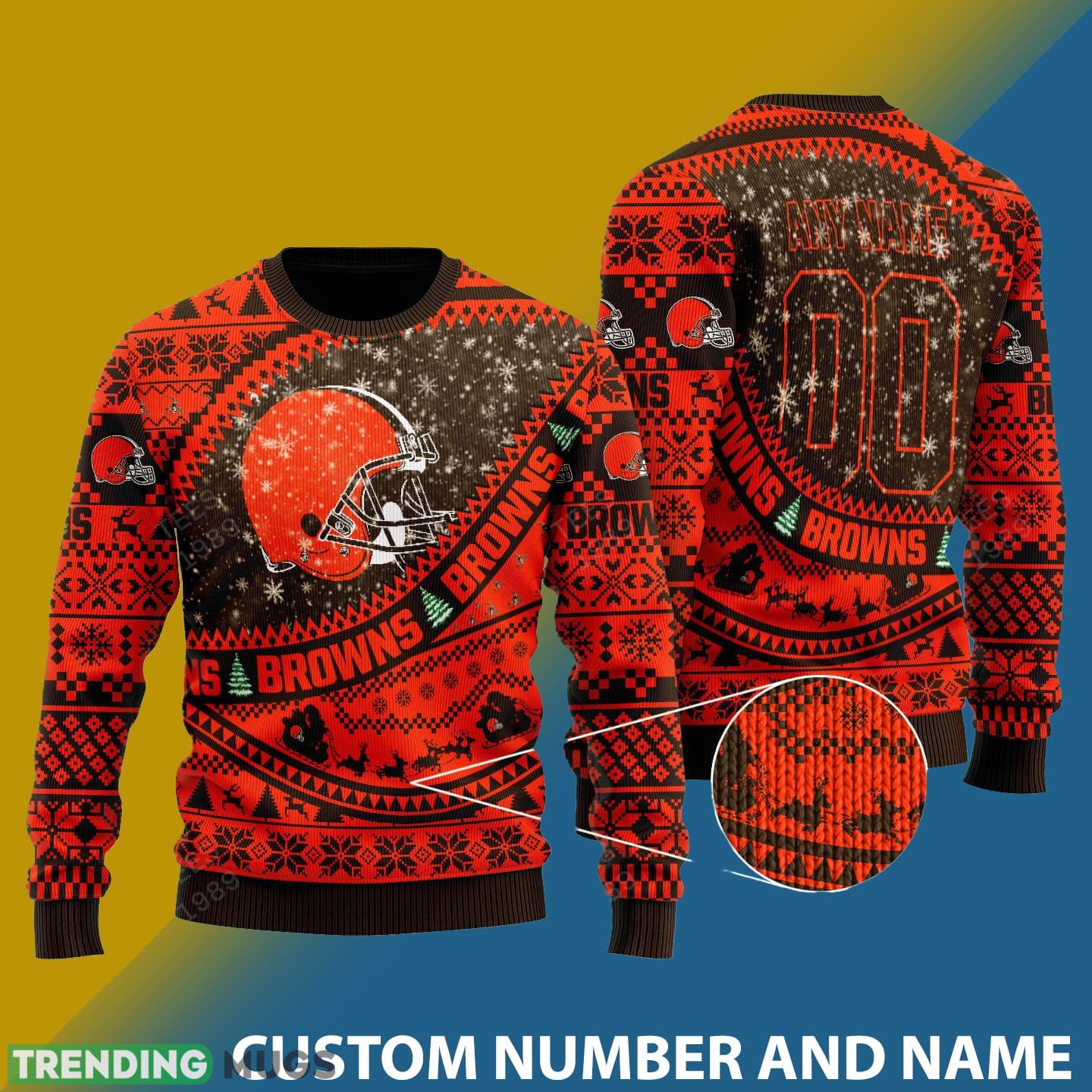 Don’t miss out on this must-have item for any Cleveland Browns fan. Order your NFL Ugly Snowflakes Reindeer 3D Sweater Custom Number And Name today and let your team spirit shine brighter than ever before!